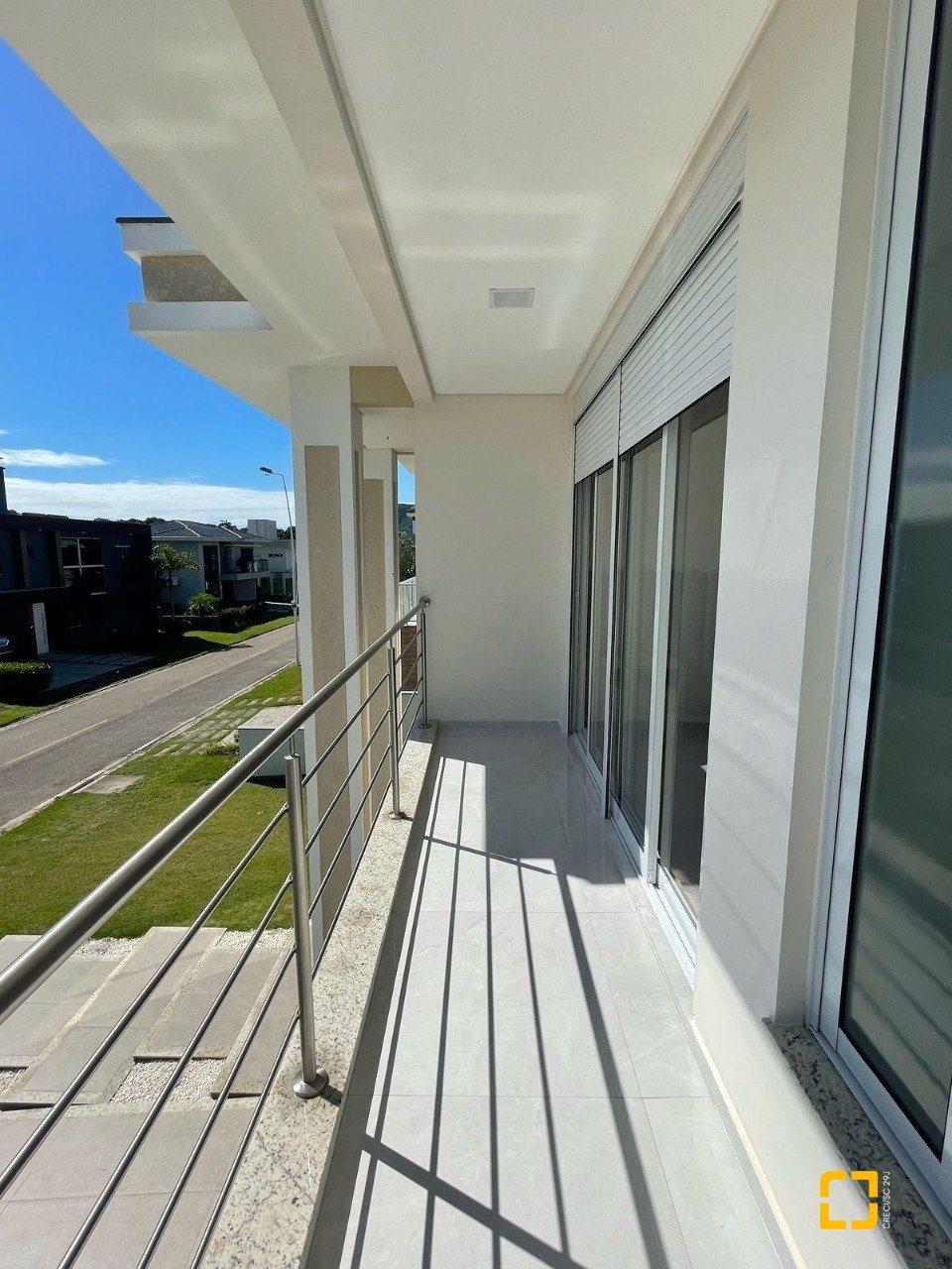 No andar superior, a planta conta com três suítes, incluindo uma suíte master com closet e sacada privativa, ideal para apreciar a vista e desfrutar de momentos de tranquilidade.