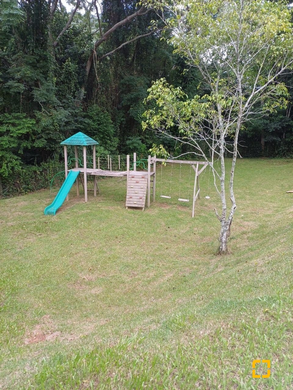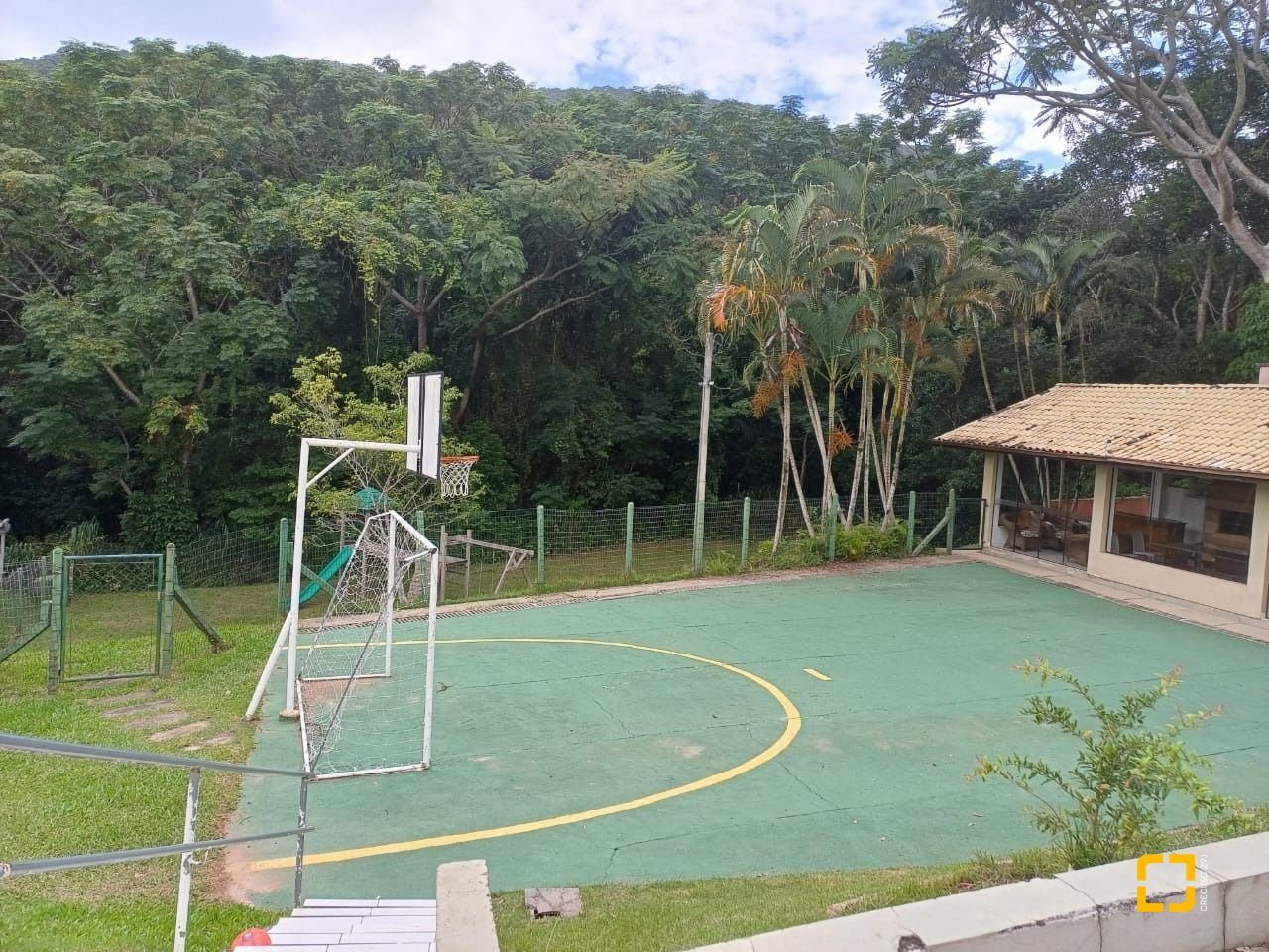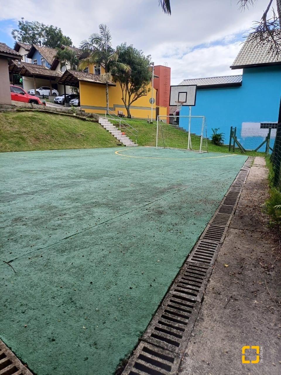 Quadra, parque infantil e salão de festas com churrasqueira.