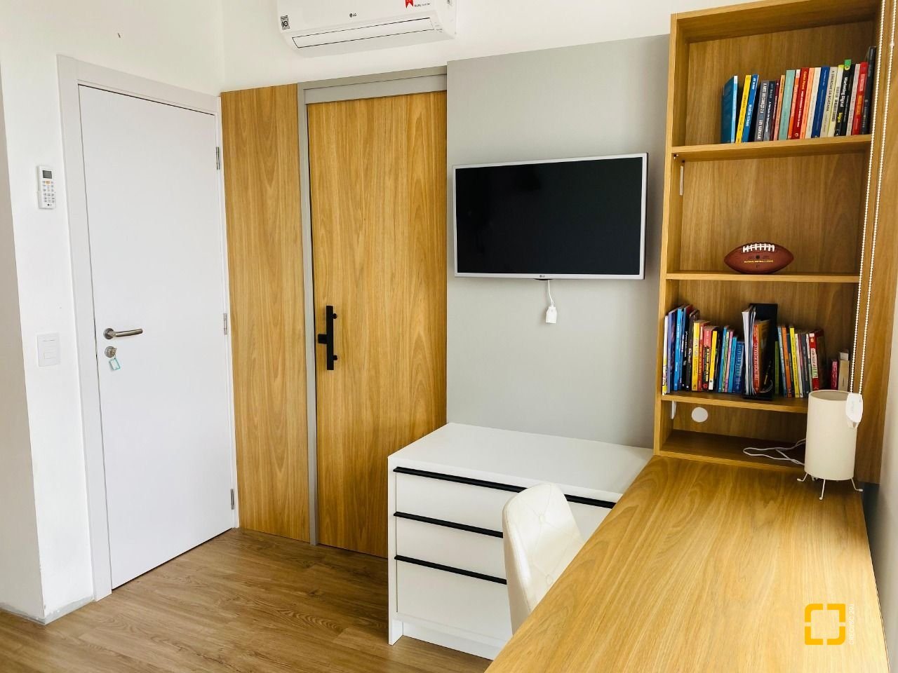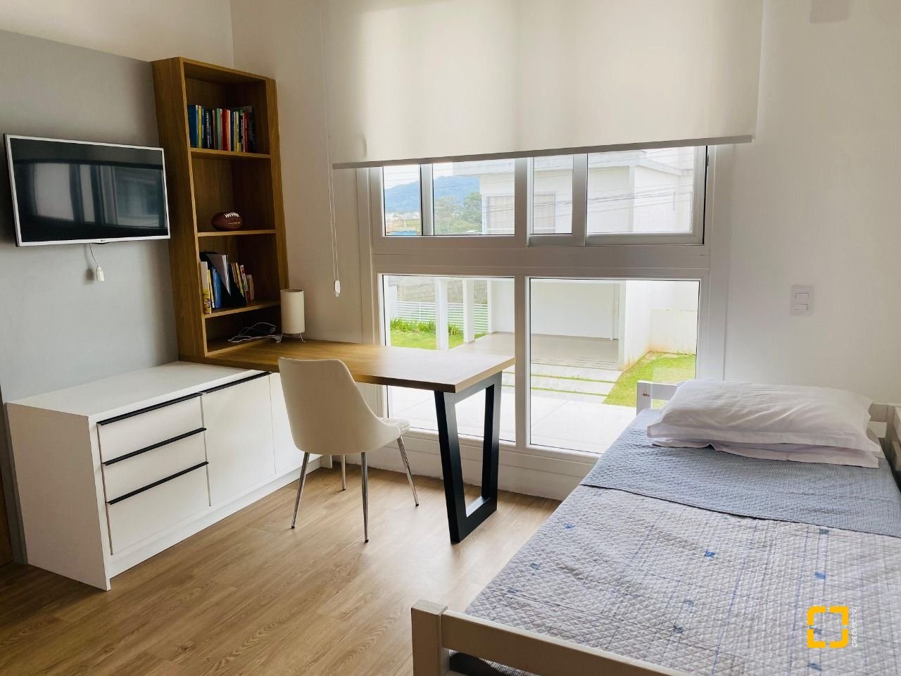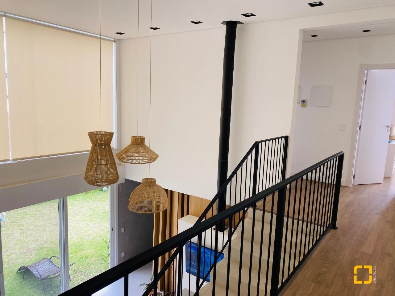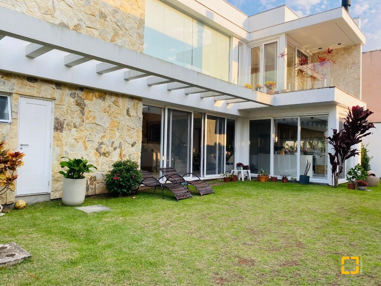 O imóvel dispõe de 4 banheiros (sendo 1 lavabo), esquadrias em PVC com telas mosquiteiras, 2 vagas de garagem cobertas, 8 pontos de ar-condicionado já instalados e projeto aprovado para construção de piscina.