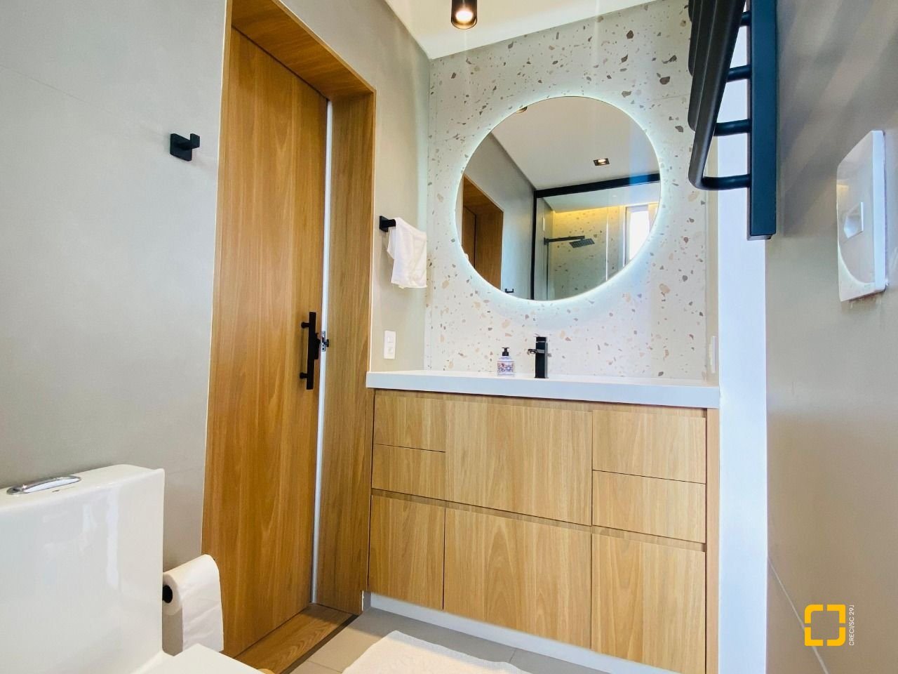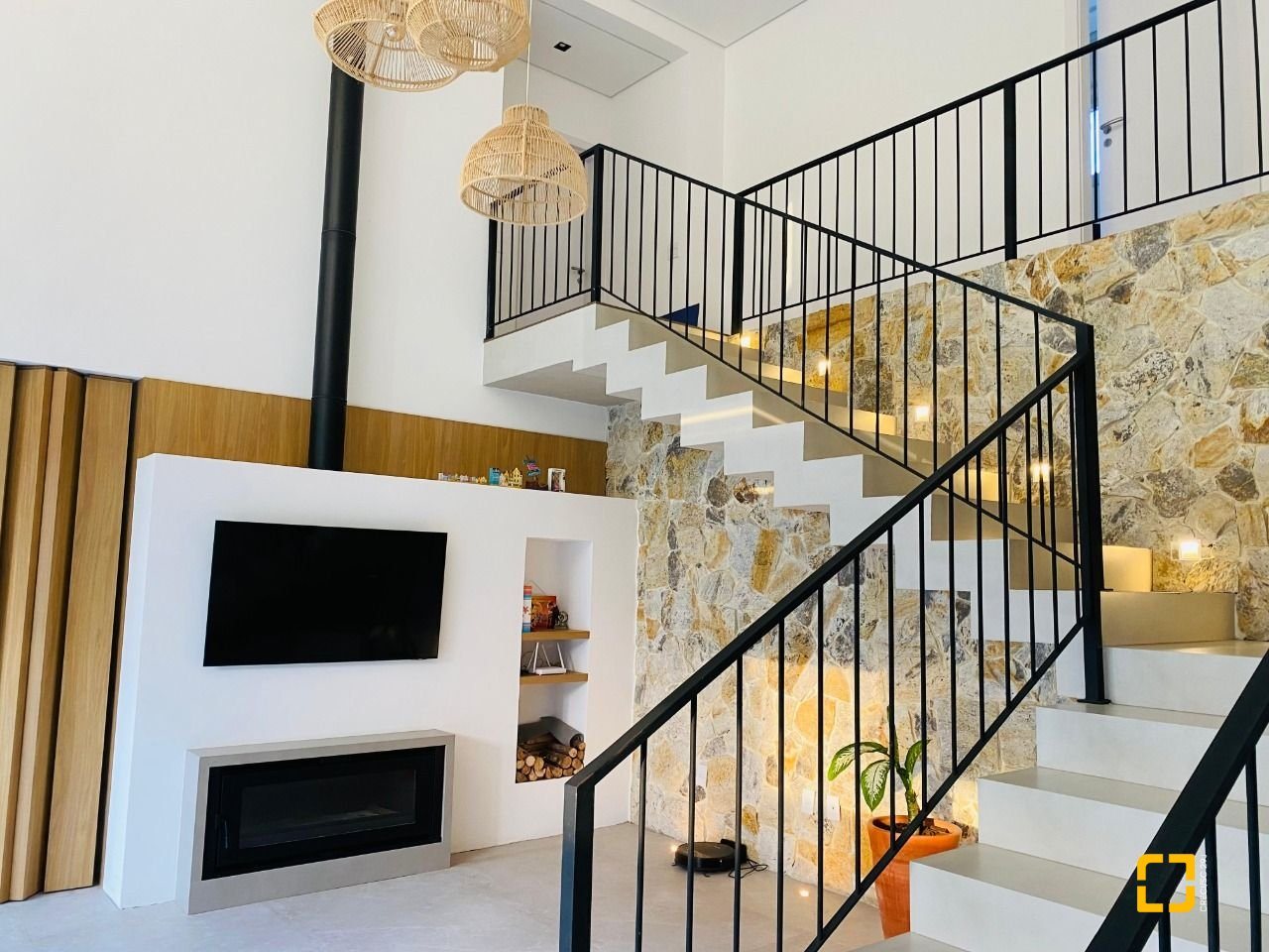 Com 267 m² de área privativa em um terreno de 369,74 m², a casa possui ambientes planejados, com móveis sob medida na cozinha, sala, suíte, closet e banheiros. Destaque para o escritório, ideal para home office, e para a área gourmet com churrasqueira integrada à cozinha.