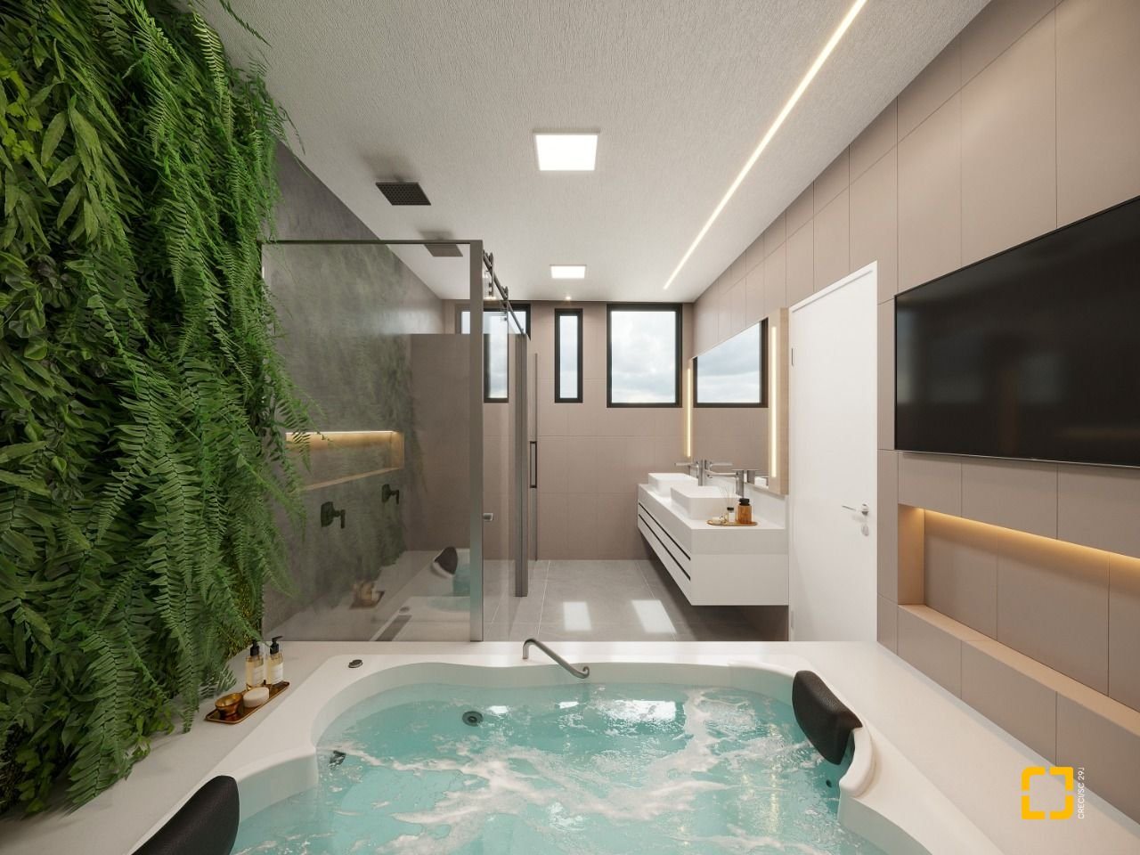 3 suítes amplas, sendo 1 master com 40m², closet, hidromassagem e duplo chuveiro, garantindo privacidade e requinte.