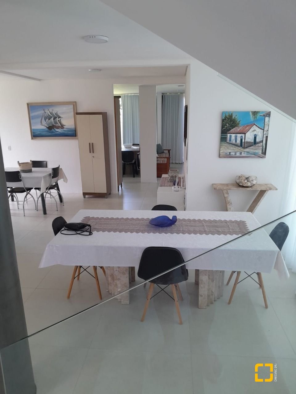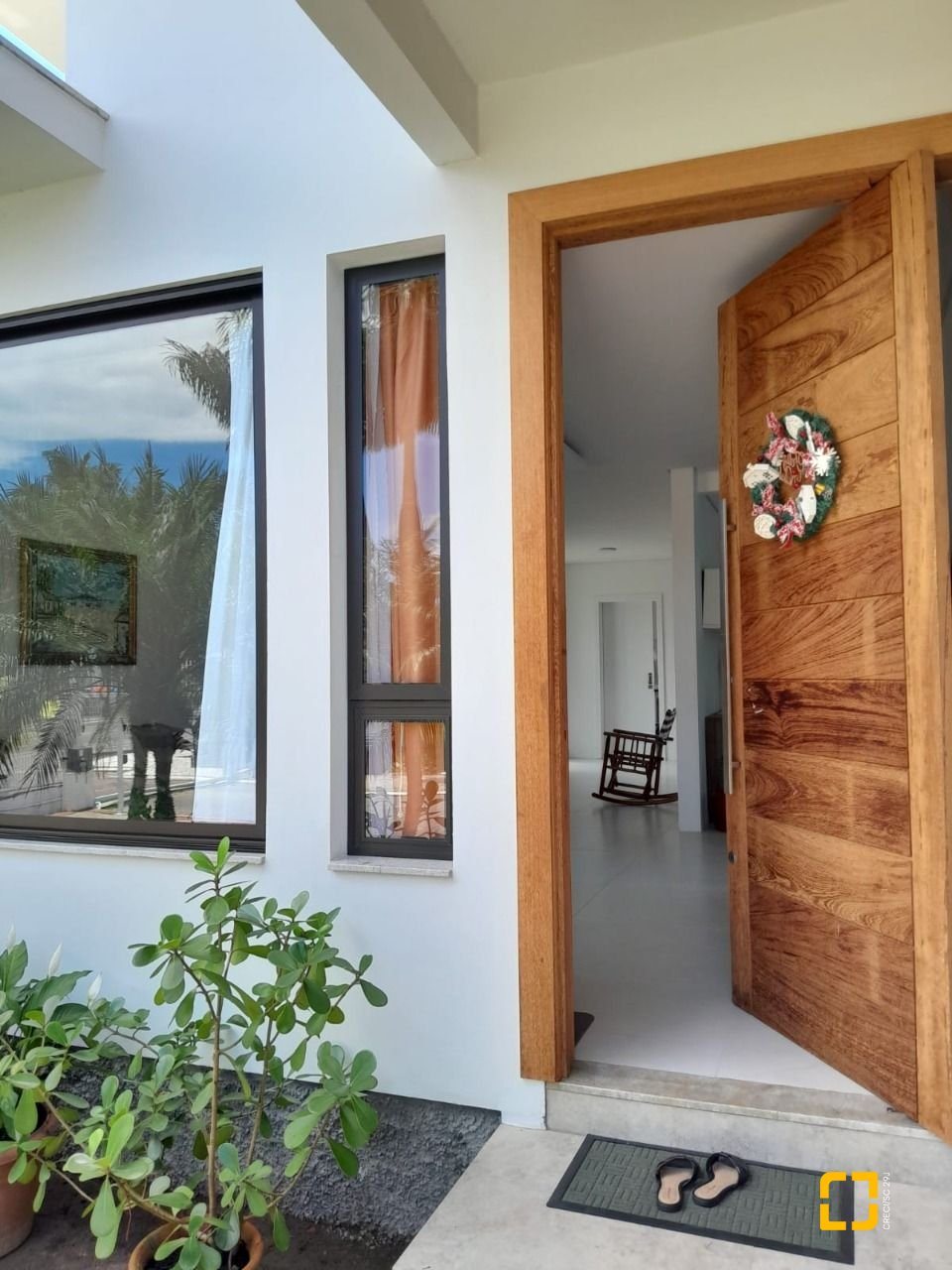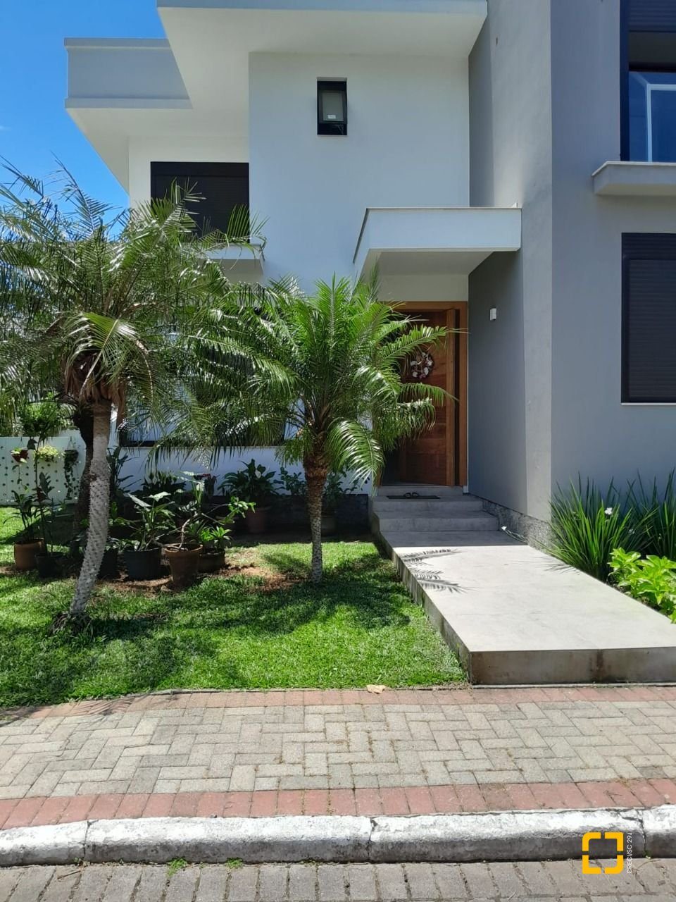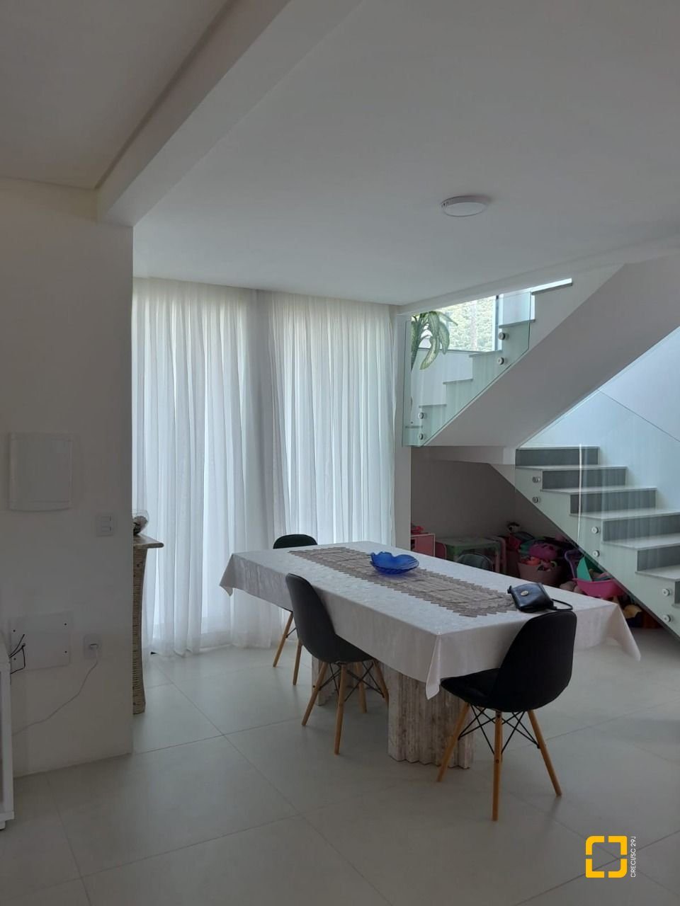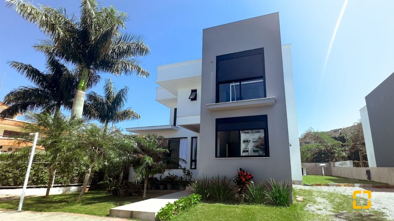 Linda casa com 288m² de área construída em condomínio fechado a poucos metros da praia da Cachoeira do Bom Jesus. São 4 dormitórios, todos suítes, sendo uma no térreo e três no piso superior, além de lavabo, sala de estar e jantar integradas, cozinha, área de serviço, depósito e espaço gourmet.