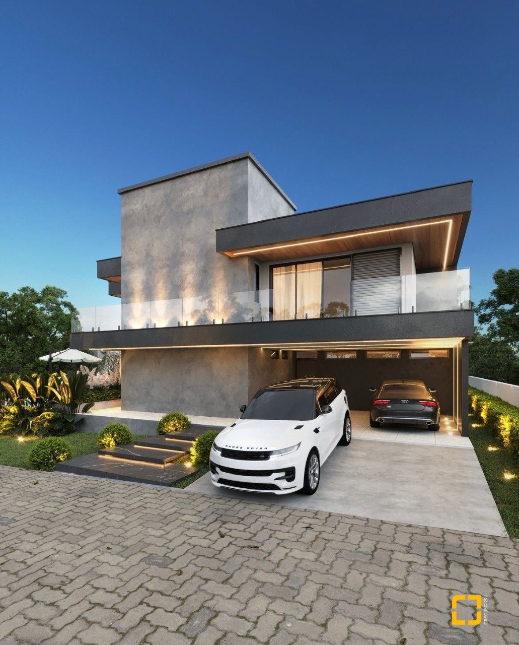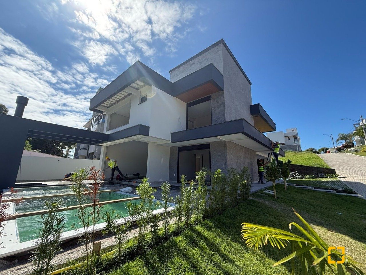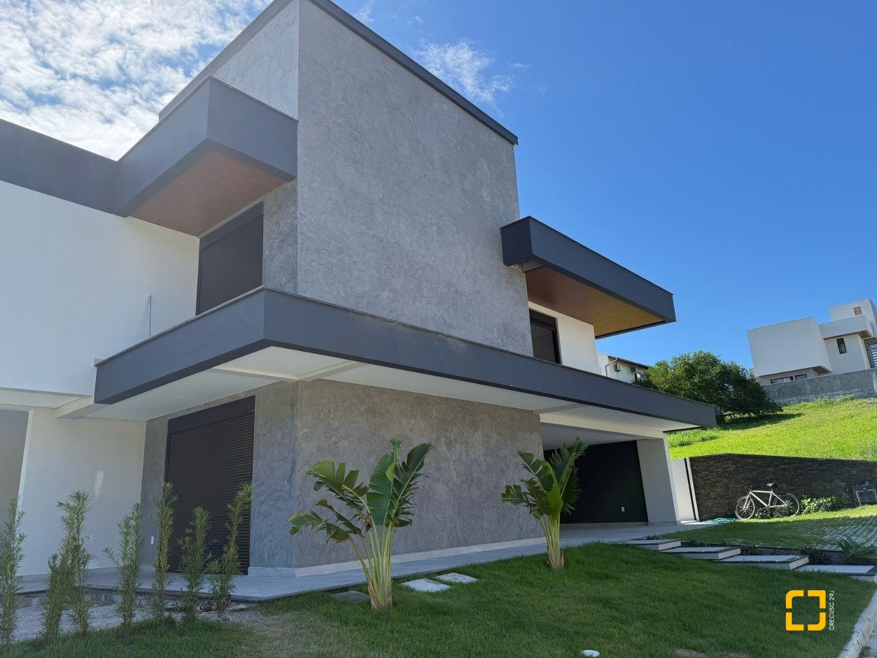 Constituída por sala de estar/jantar e cozinha (conceito aberto), área de serviço, 01 banheiro social, 04 amplas suítes, varanda gourmet com churrasqueira, amplo quintal, piscina e garagem coberta para 02 carros.