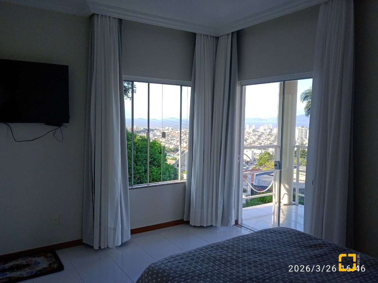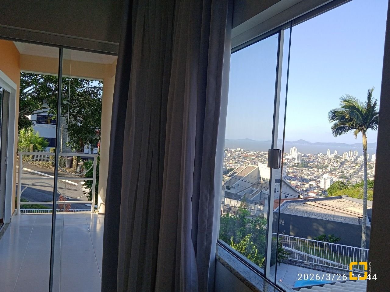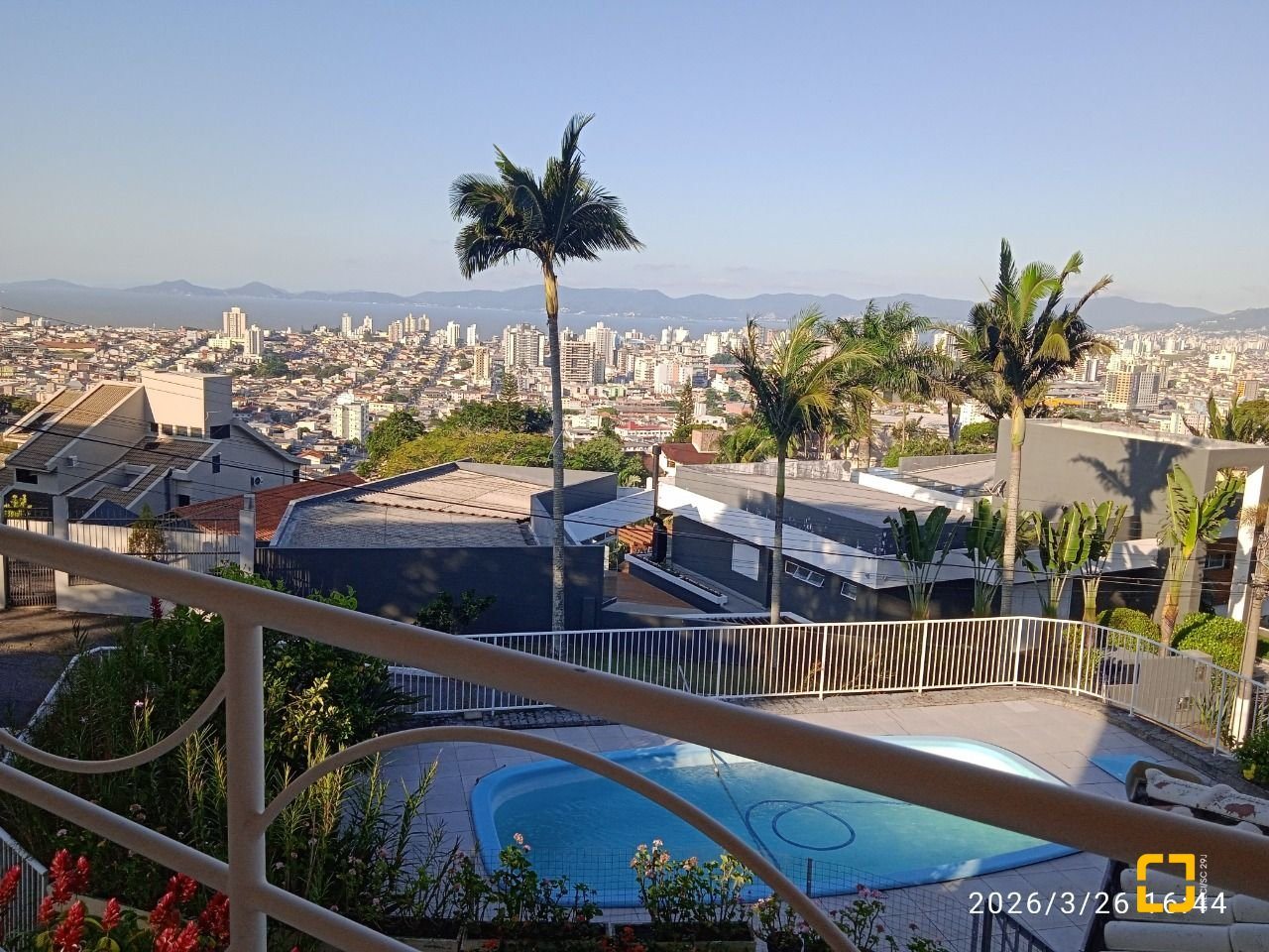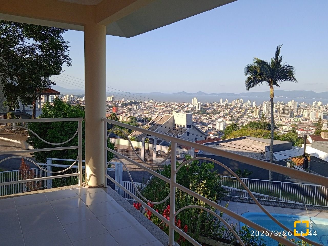 * Sacada (vista para o mar, com acesso para 2 quartos).