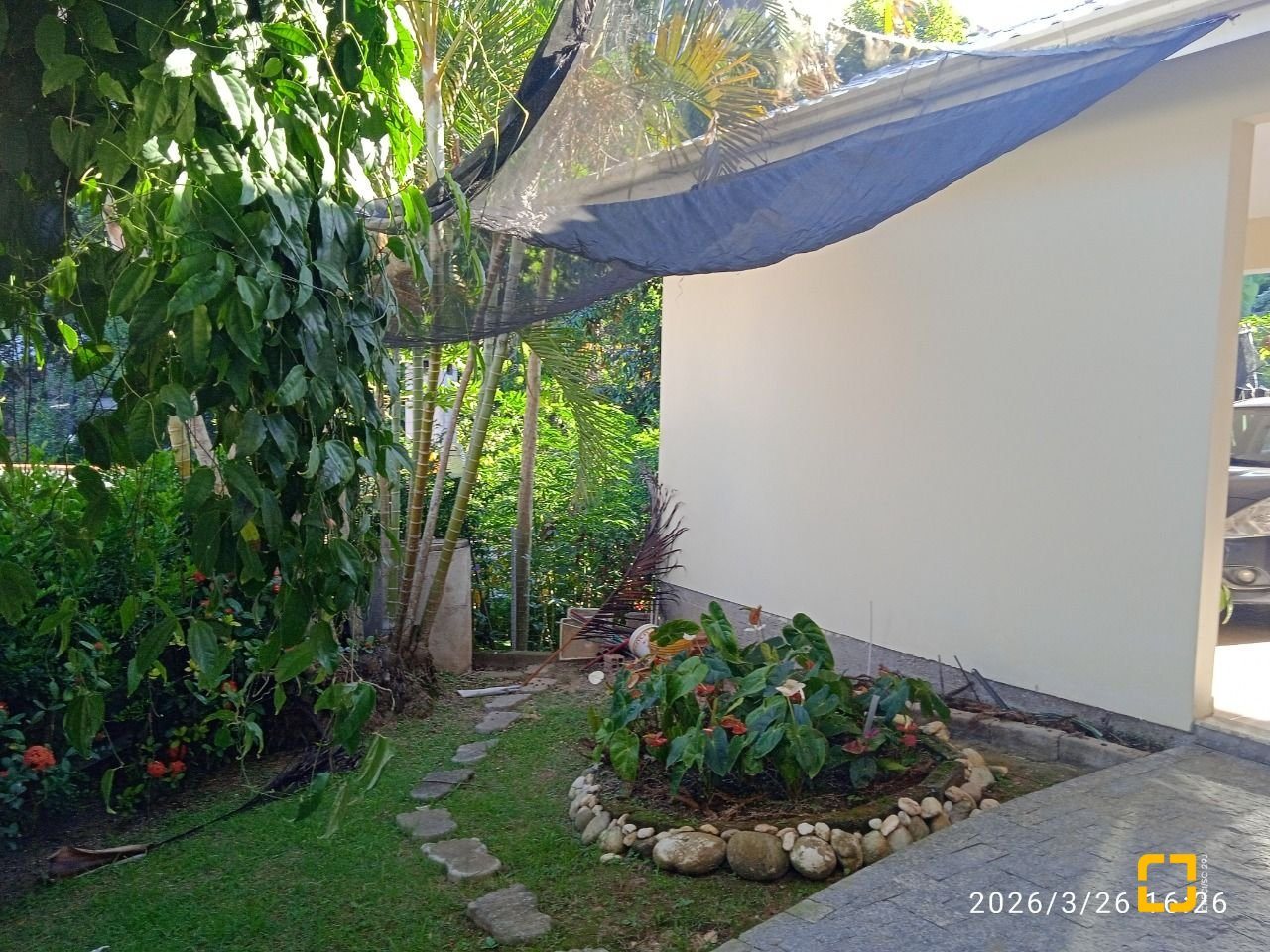 * Área na frente da casa.