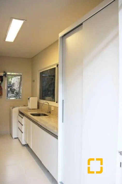 A entrada começa por uma escada lateral que traz privacidade aos moradores. Subindo as escadas temos o hall planejado com pendente e o piso elevado. Aqui encontramos a área social da casa com 3 ambientes integrados e 01 sala mais intimista ao lado das escadas internas. Nesse ambiente integrado encontramos sala, copa e cozinha planejada. Todas elas possuem a vista para o amplo deck e piscina particular. Nesse andar também encontramos lavabo, lavanderia e um jardim gramado. No segundo andar está a área privativa da casa, temos o acesso através de uma escada em mármore Travertino e corrimão em aço inox. . Andar com piso laminado, louças de banheiro da marca Deca, metais Docol.