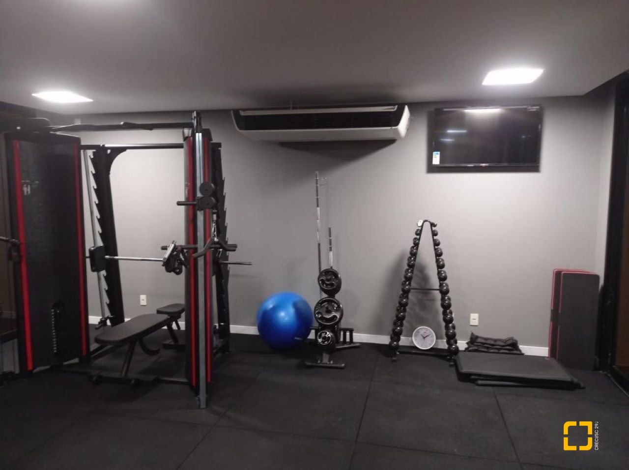 Espaço técnico com caixa d?água de 3.000 litros, boiler e máquinas de ar-condicionado split