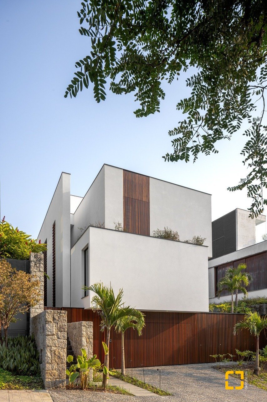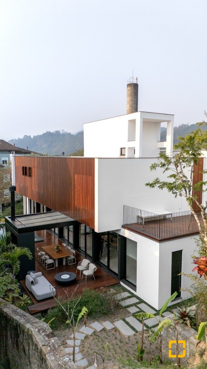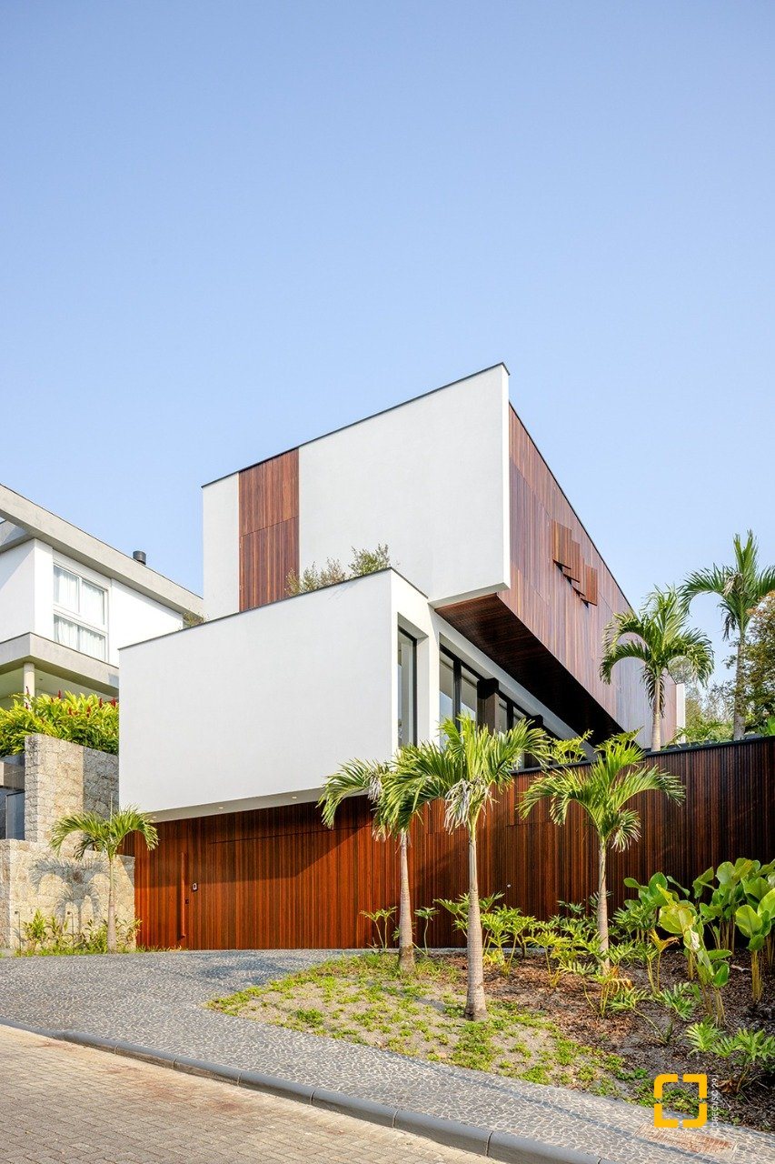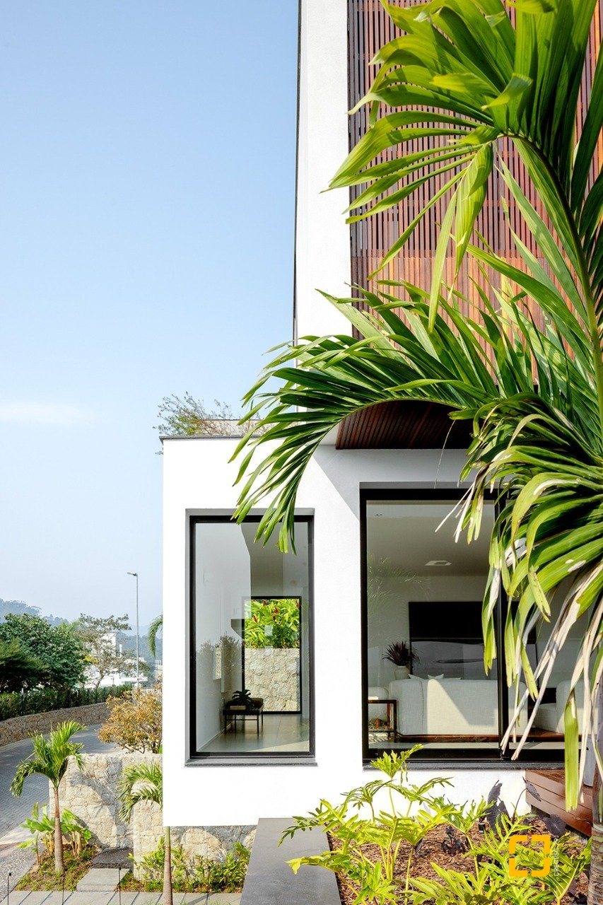 O imóvel de arquitetura moderna do Studio Gabriel Bordin, com vista parcial para o mar, conta com uma área construída de 484 m², composta por 3 suítes no piso superior, sendo 1 máster com closet e hidromassagem, e no piso inferior, um amplo living para 3 ambientes, com pé direito alto, integrados com a cozinha. Possui área de serviço completa.