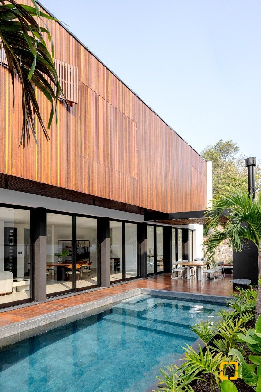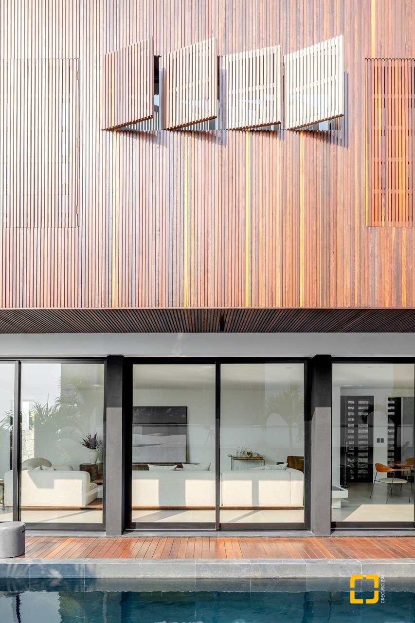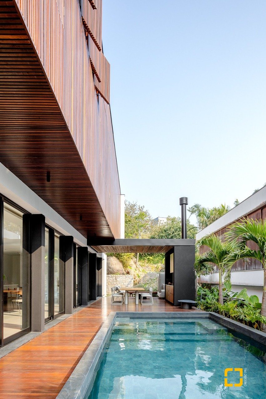 O imóvel de arquitetura moderna do Studio Gabriel Bordin, com vista parcial para o mar, conta com uma área construída de 484 m², composta por 3 suítes no piso superior, sendo 1 máster com closet e hidromassagem, e no piso inferior, um amplo living para 3 ambientes, com pé direito alto, integrados com a cozinha. Possui área de serviço completa.