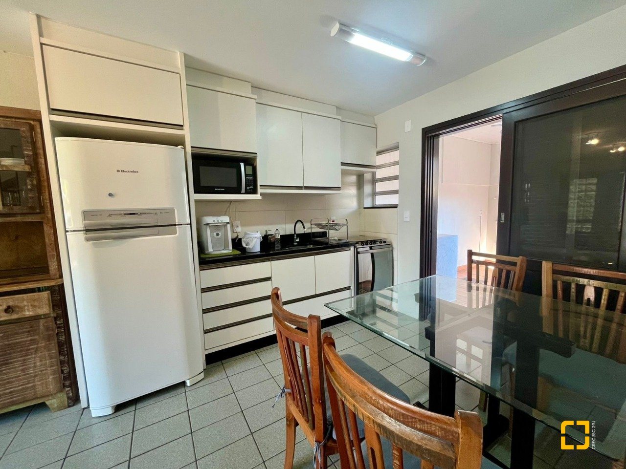 Em um condomínio compacto, arborizado a casa conta com sala de estar, jantar e cozinha integradas, 2 dormitórios com ar condicionado, 2 banheiros completos, dispensa, área com churrasqueira e varanda, uma vaga de garagem, o condomínio oferece bicicletário, sistema de segurança e uma área em aberto para um possível espaço gourmet.