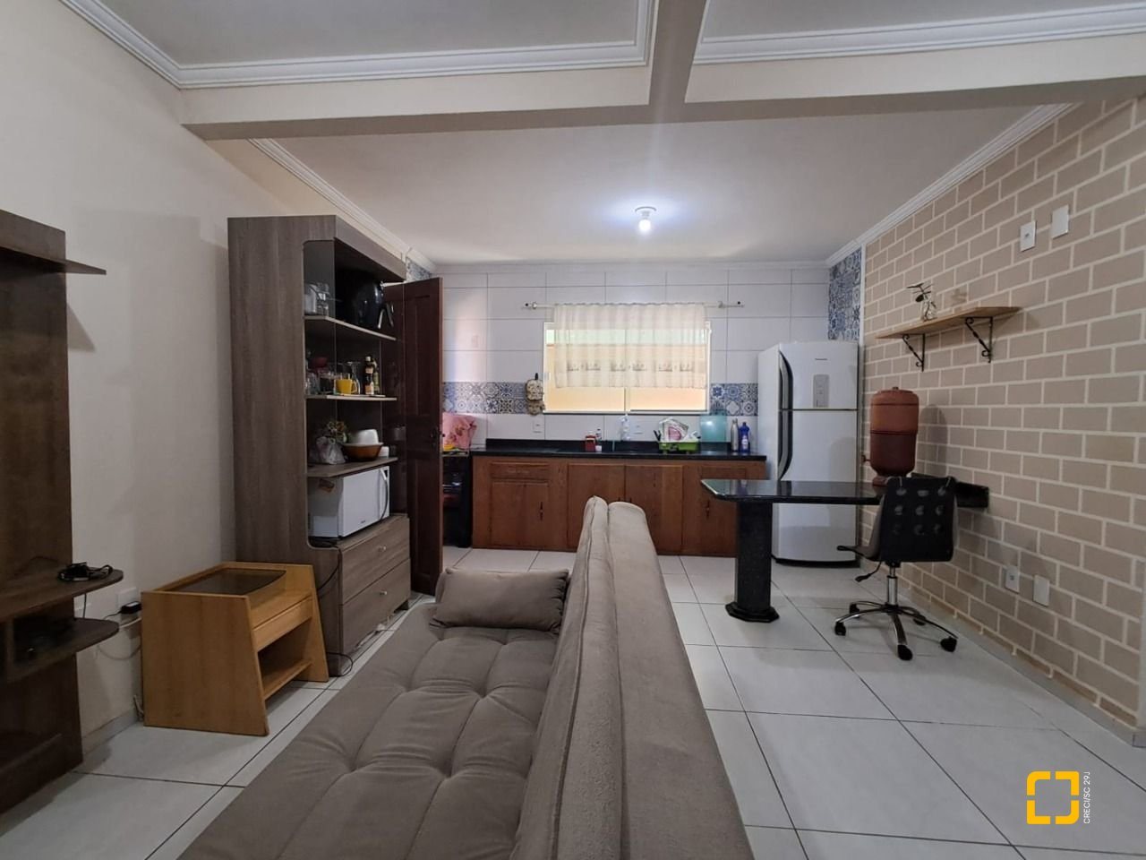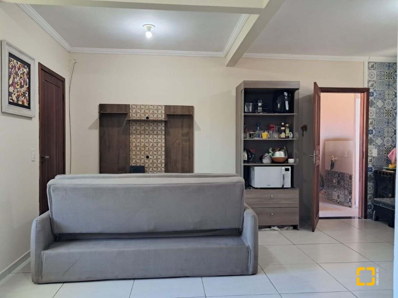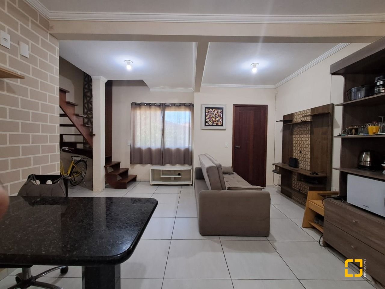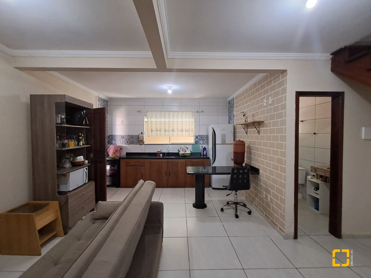 O sobrado conta com dois dormitórios amplos e bem iluminados sendo um deles com sacada, a casa possui dois banheiros, vagas de garagem (coberta), churrasqueira. A cozinha está integrada a sala em um espaço amplo, planejado para oferecer praticidade no dia a dia, a sala de estar, proporcionando mais conforto e privacidade ao ambiente.