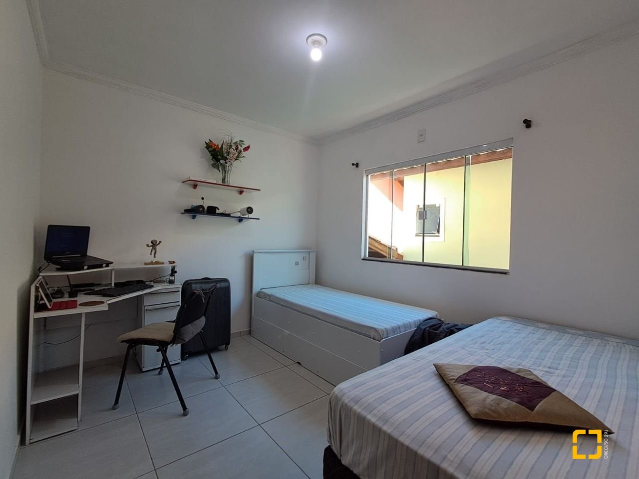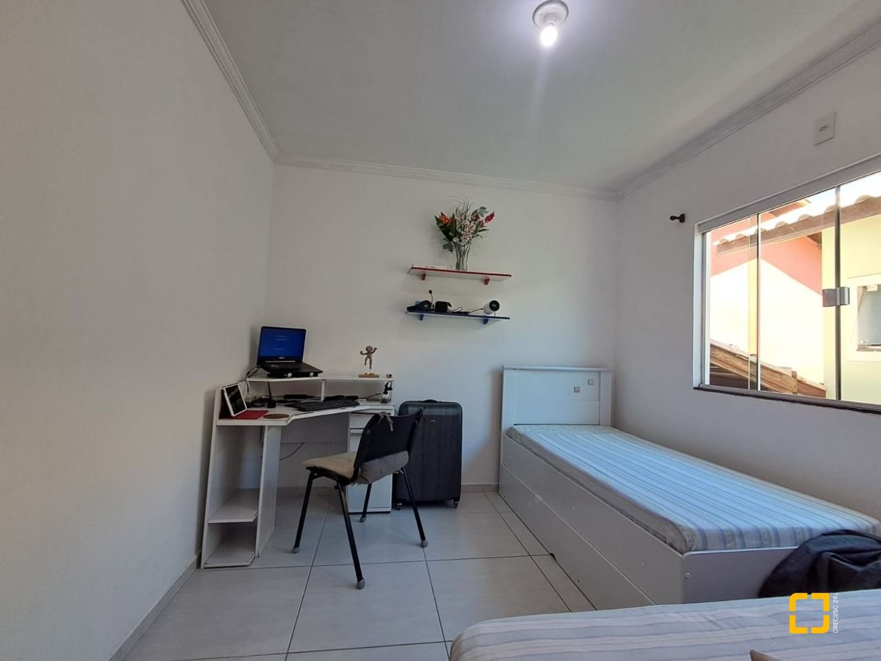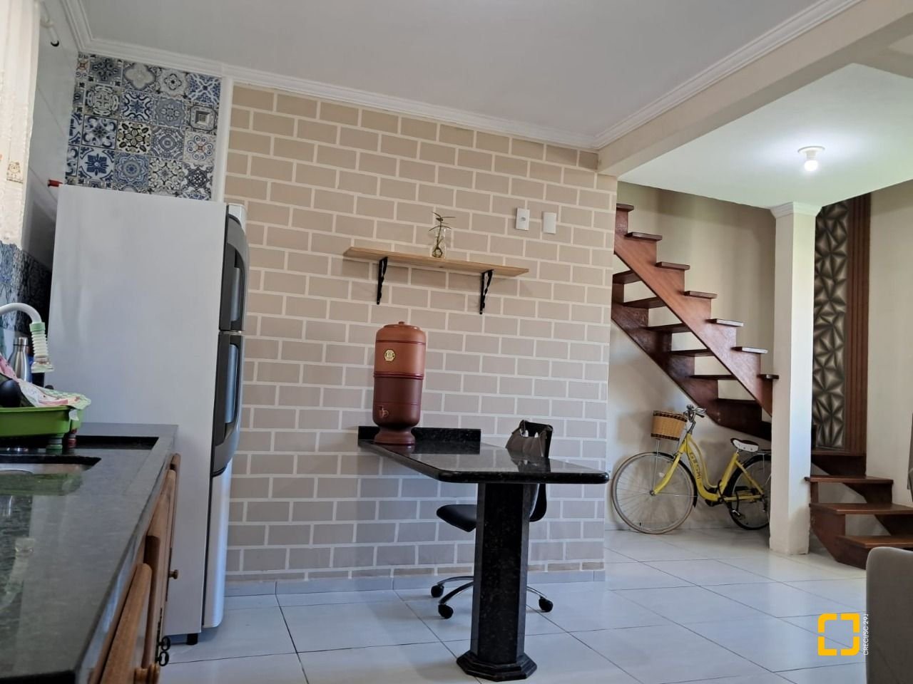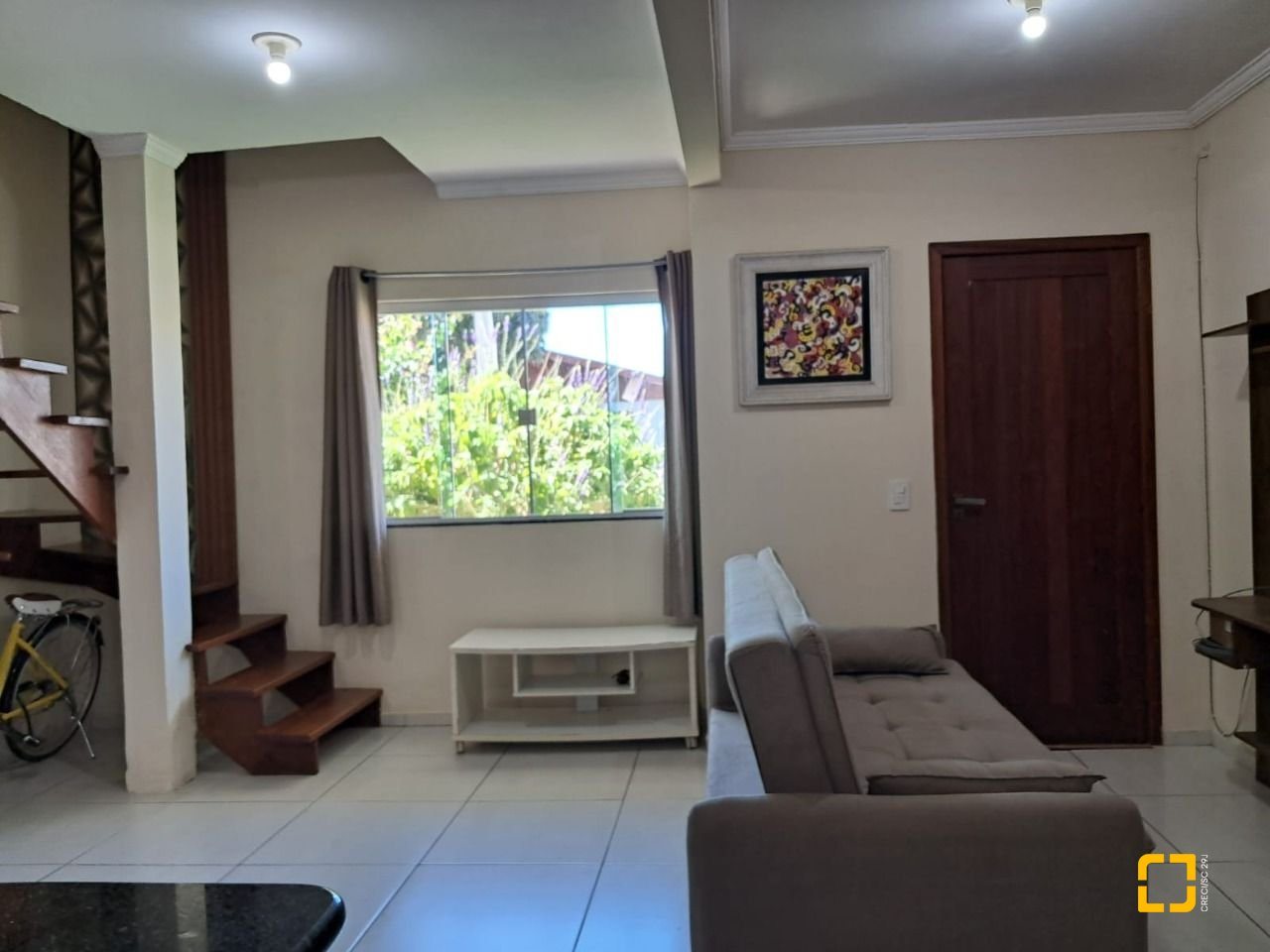 O sobrado conta com dois dormitórios amplos e bem iluminados sendo um deles com sacada, a casa possui dois banheiros, vagas de garagem (coberta), churrasqueira. A cozinha está integrada a sala em um espaço amplo, planejado para oferecer praticidade no dia a dia, a sala de estar, proporcionando mais conforto e privacidade ao ambiente.