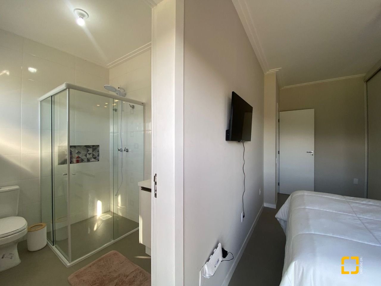 Estilo sobrado com 3 quartos sendo 1 suite com armários planejados, persianas elétricas e sacada; 2º quarto tambem com armário.