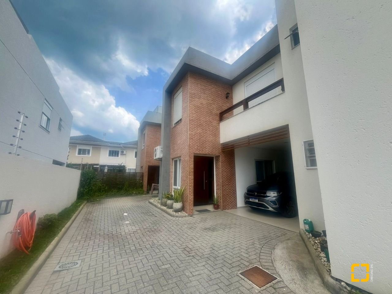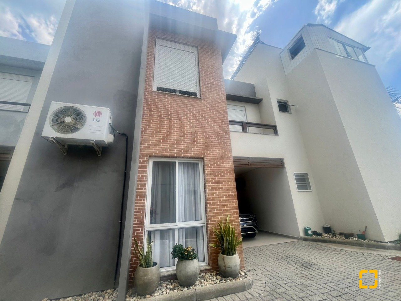 No térreo possui uma vaga de garagem, área externa para descanso e espaço gourmet integrado, perfeito para aproveitar com os amigos e família. Entrando no imóvel possui sala de estar e jantar e cozinha integradas, uma espaçosa lavanderia e lavabo. Já no primeiro andar são 3 dormitórios, sendo uma suíte com closet e mais um banheiro social.