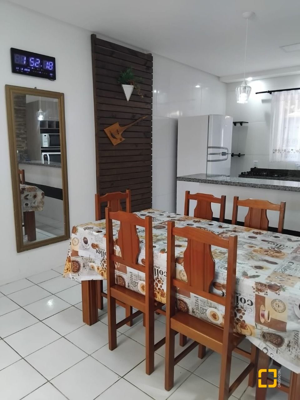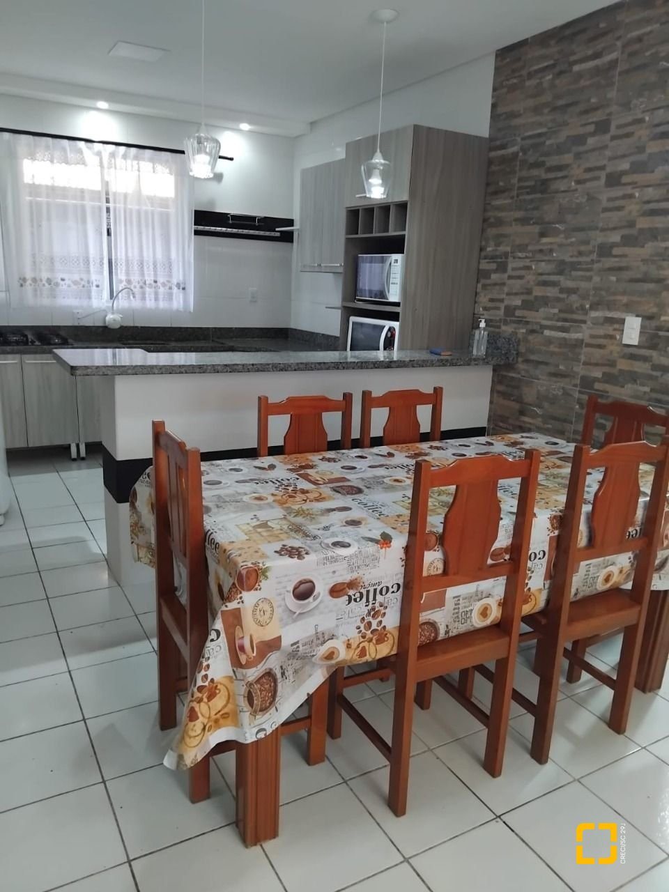 A casa conta com 3 dormitórios, sendo 1 suíte, além de sala de estar e sala de jantar integradas, cozinha funcional e área de serviço, proporcionando praticidade no dia a dia.