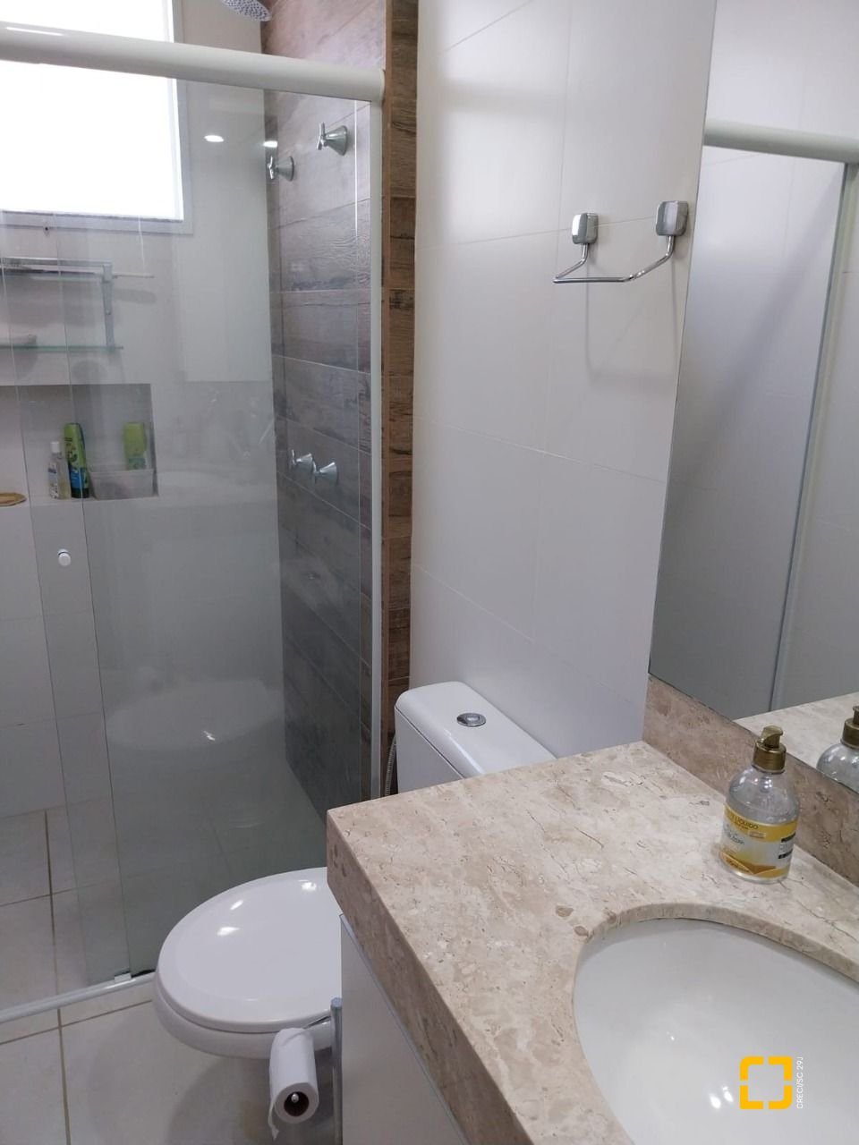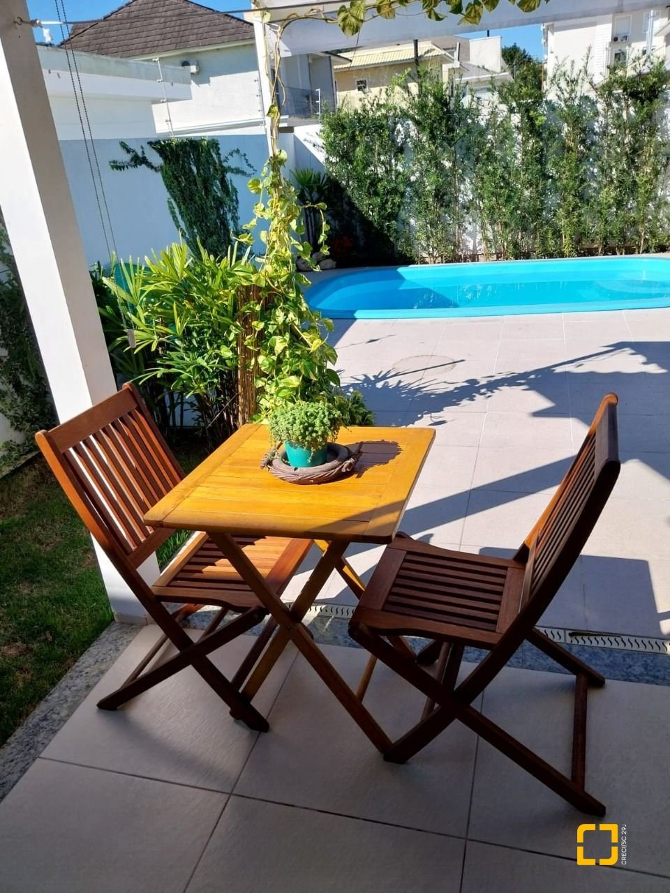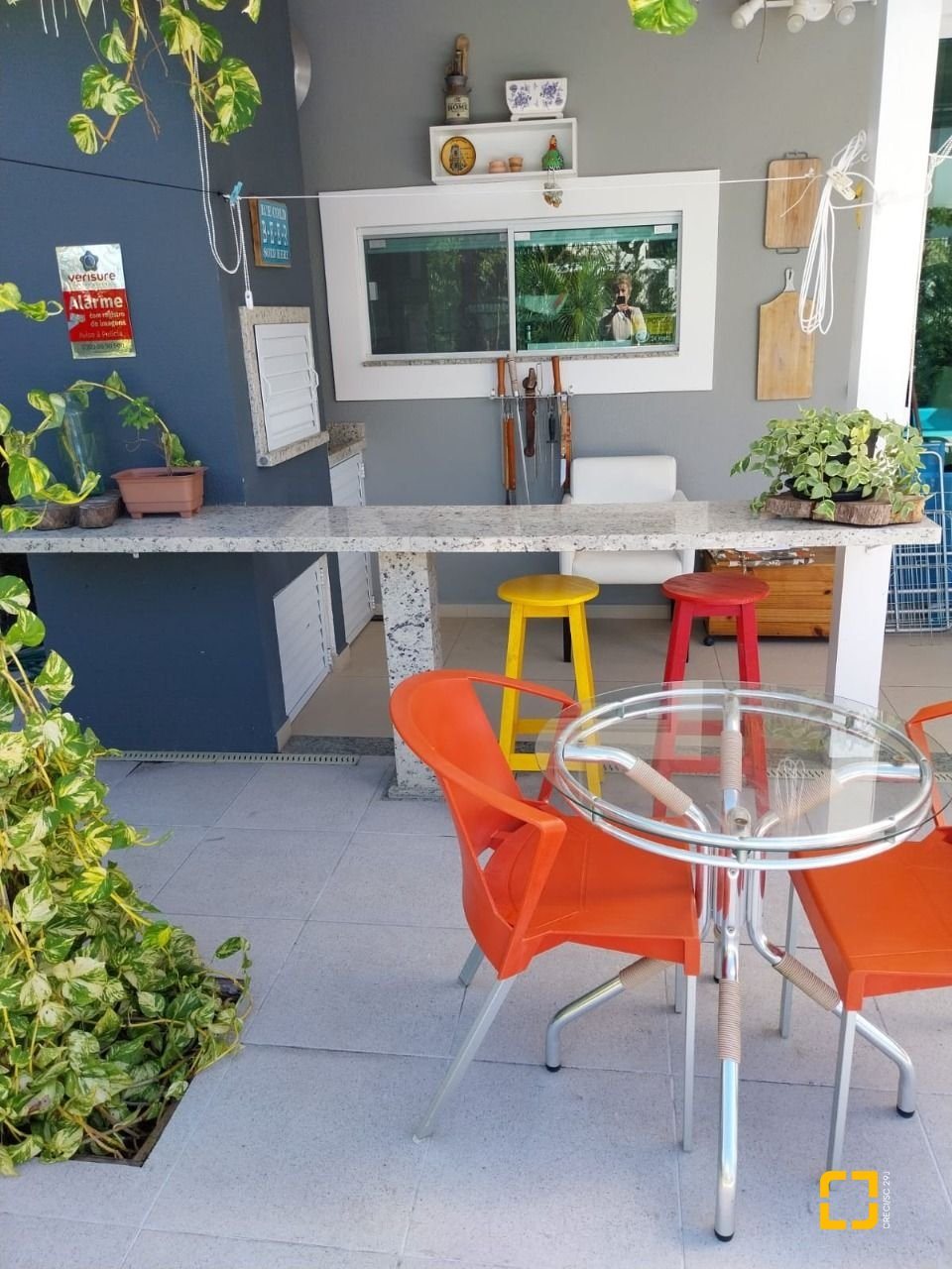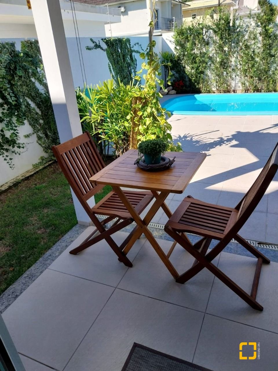 sala de estar, jantar e cozinha integradas com armários planejados, banheiro social, lavanderia, área gourmet externa com amplo quintal churrasqueira integrada à área da piscina. No piso superior 3 suítes espaçosas e sacada.