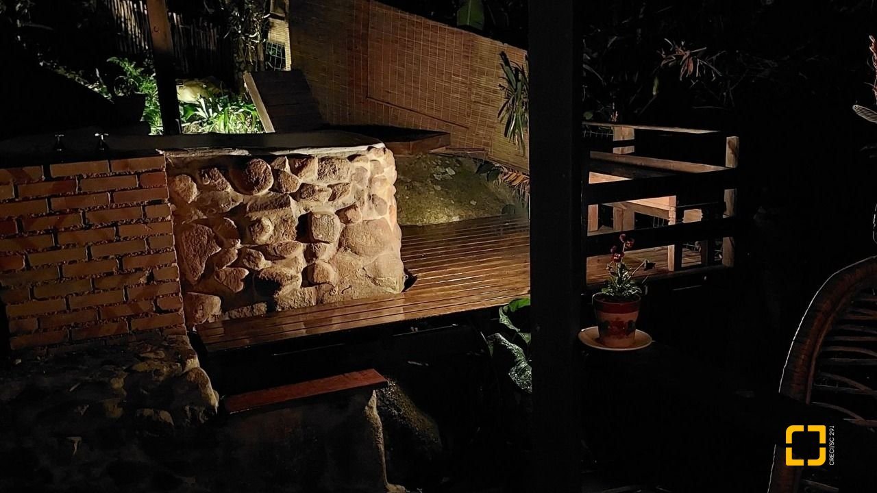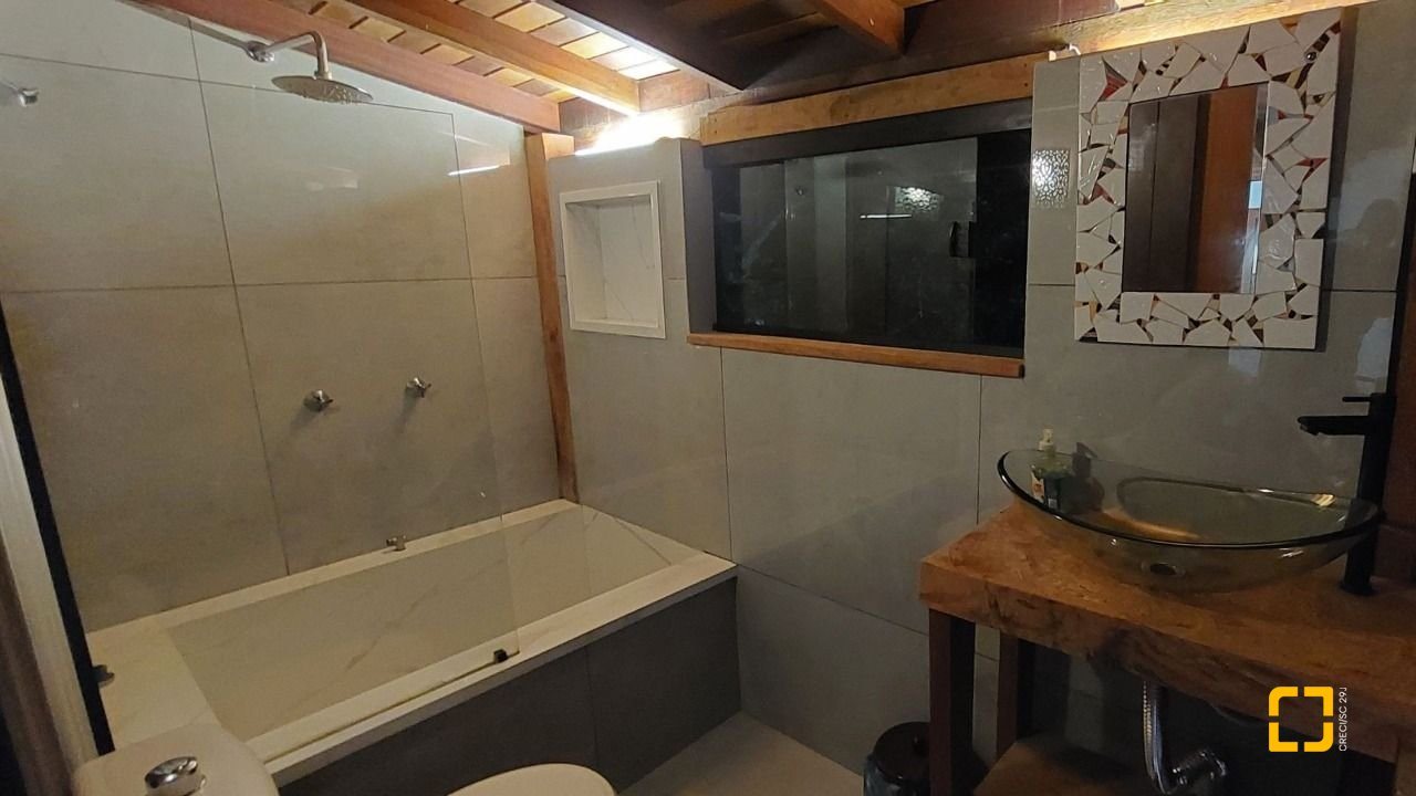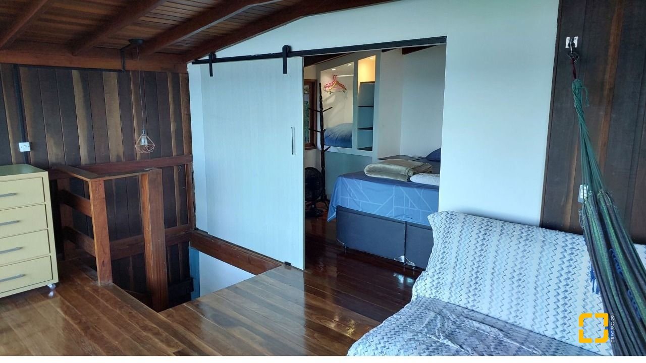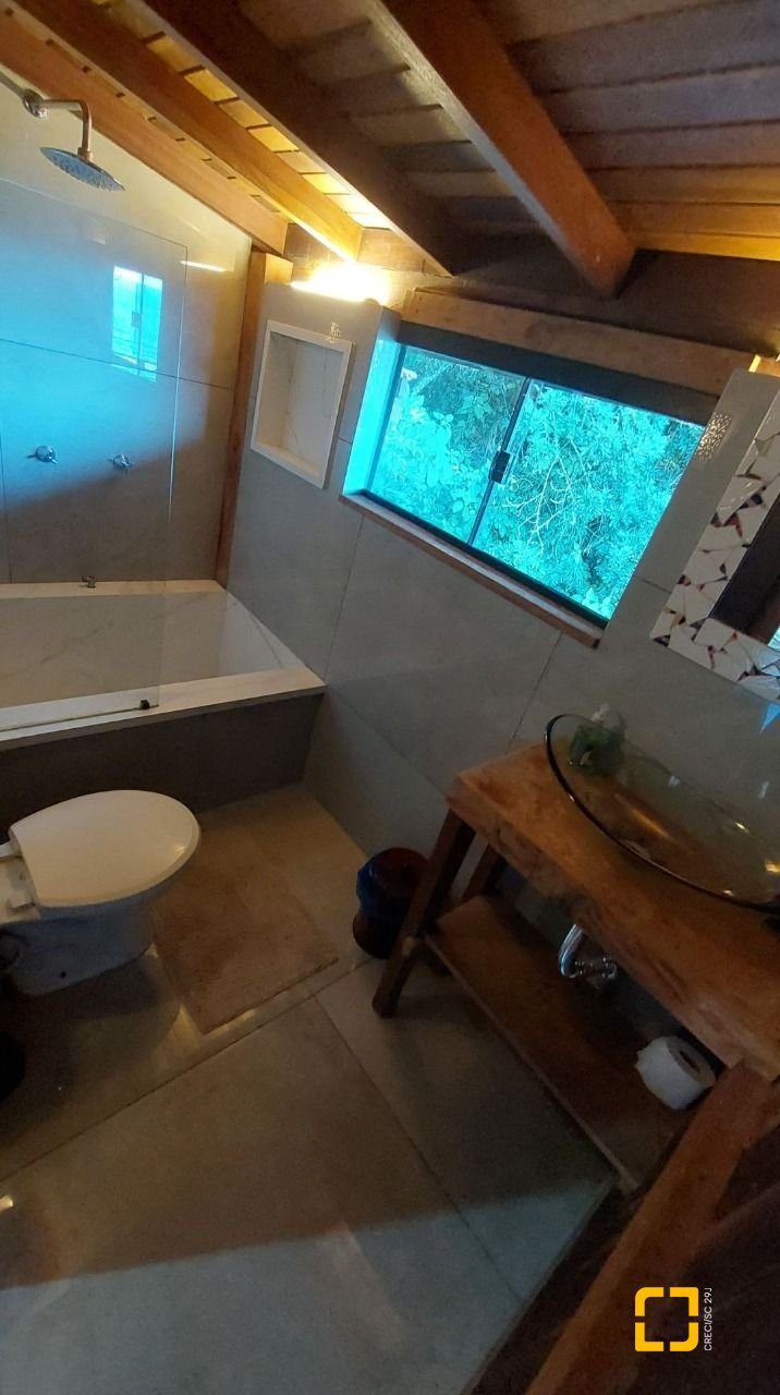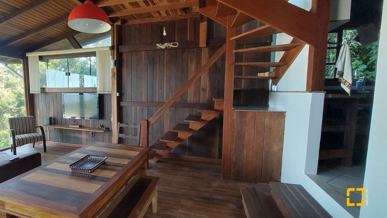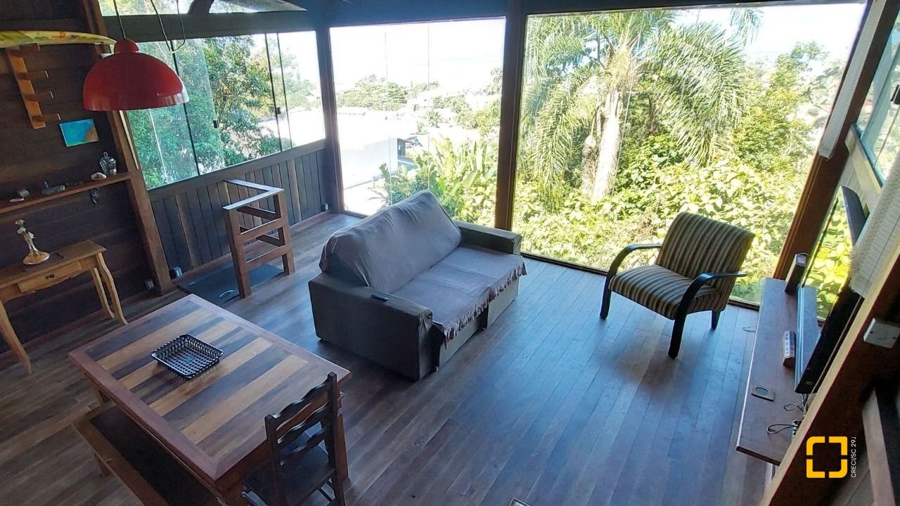 Terreno com 530 m2. Imóvel com peças amplas, acabamento rústico de alto padrão combinando alvenaria, madeira de lei e porcelanato o que torna os ambientes muito aconchegantes. Na área externa espaço para churrasqueira, jacuzzi aquecida a gás com pedras naturais, pomar com várias espécies frutíferas, área para hortas e jardim em proximidade a Mata Atlântica e até uma nascente d'água dentro do terreno. A propriedade possui poucos vizinhos, lugar muito tranquilo em contato com a natureza. É possível avistar todos os dias tucanos, saguis, cutias entre outras espécies típicas da região. A casa tem 3 andares sendo os dois de cima uma unidade e o andar térreo um flat independente com cozinha, banheiro, sala e quarto. A área externa ainda conta com dois ranchos para guardar material ou ser utilizado como oficina. Vaga de garagem para dois carros. A casa está a 100 metros da rodovia SC 405. O acesso é uma rampa de concreto bastante inclinada preferencialmente para veículos com tração nas quatro rodas. Isso pode ser melhorado com uma pequena obra de recapagem na parte inferior da subida. A suíte principal possui chuveiro a gás e banheira. Imóvel com todas as manutenções em dia é só mudar e desfrutar de uma das regiões mais privilegiadas e valorizadas de Florianópolis. A casa está a 10 minutos do aeroporto internacional de Florianópolis e 20 do centro da cidade. O bairro conta com total infraestrutura como supermercado a 200m, farmácia, áreas de lazer, como o parque municipal da Lagoa do Peri e a 5 minutos a pé da praia da Armação. Durante a temporada é comum avistar baleias de qualquer cômodo da casa já que todos possuem vista para o mar.