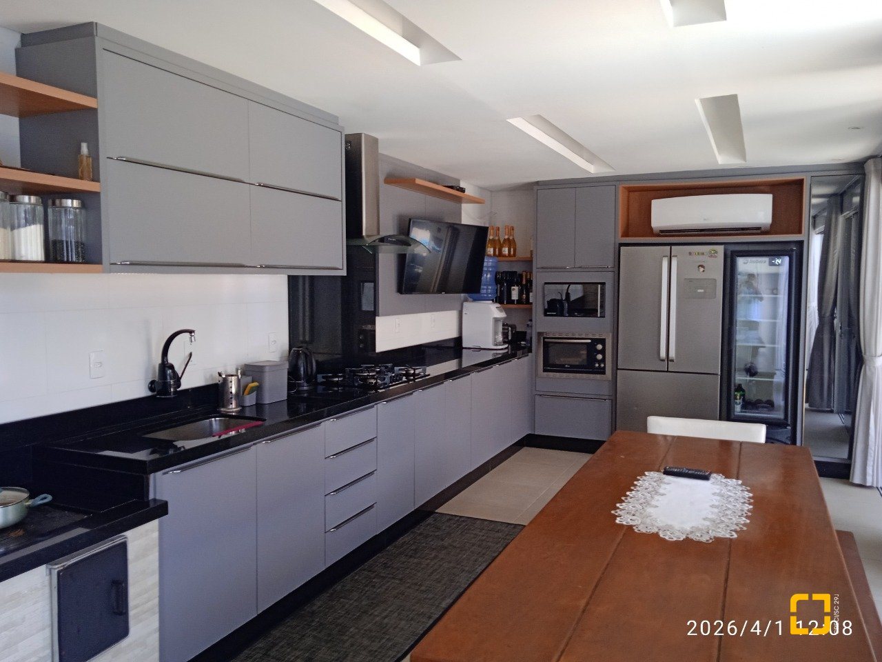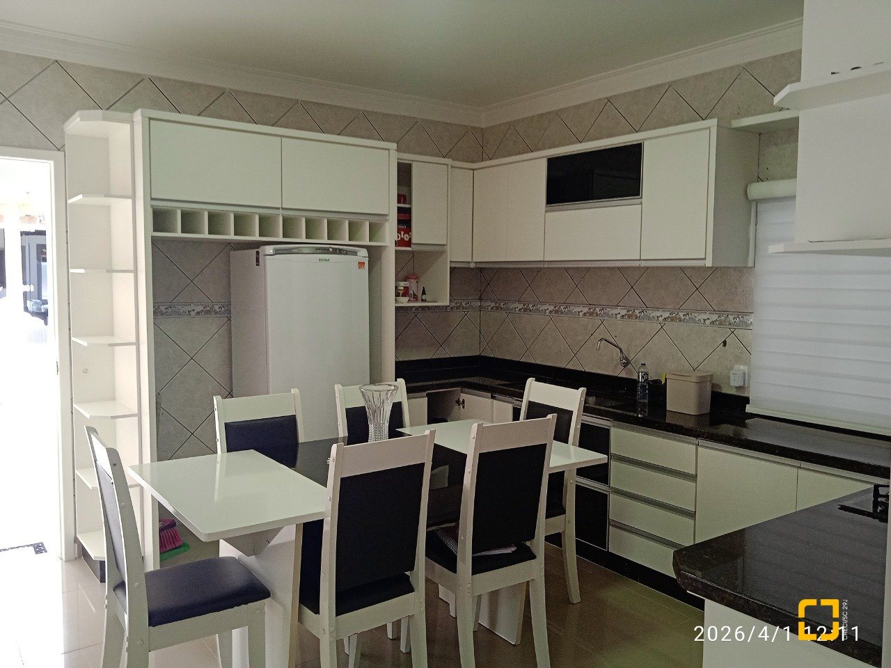 * 1 Cozinha com armários embutidos e sala integrada.