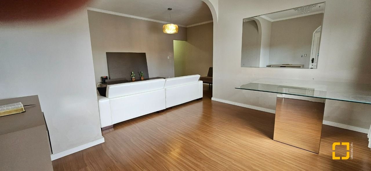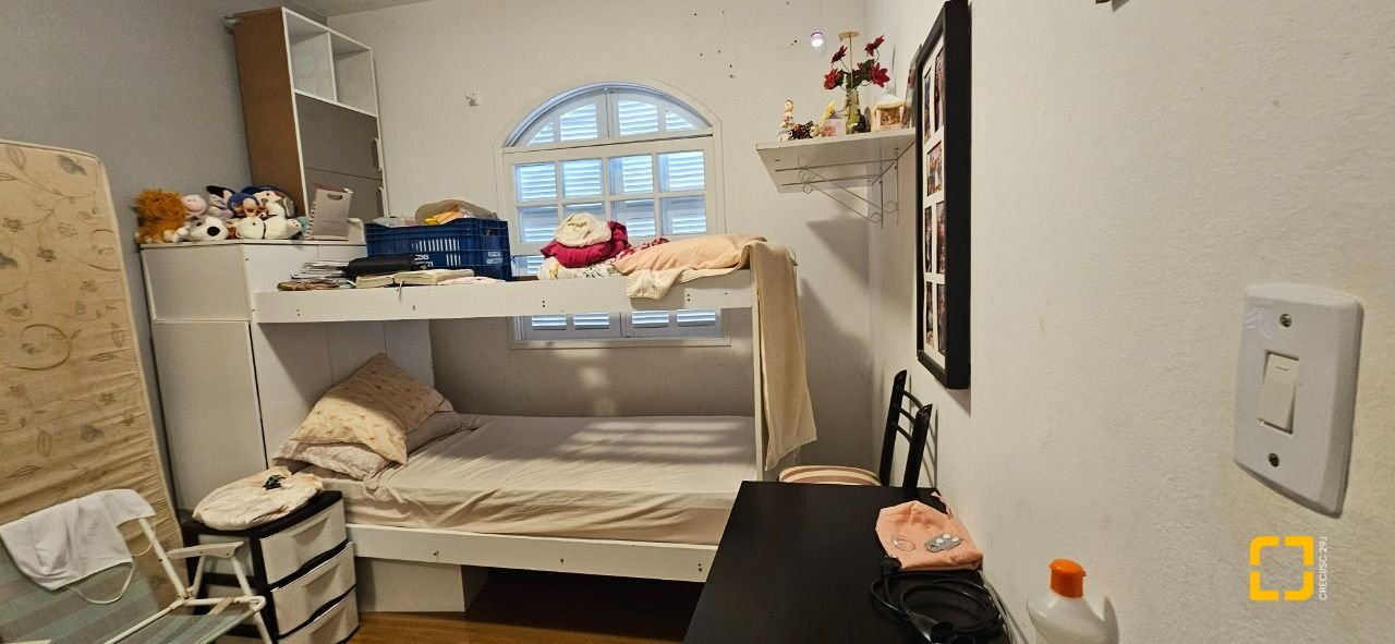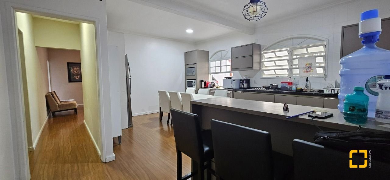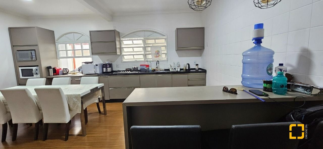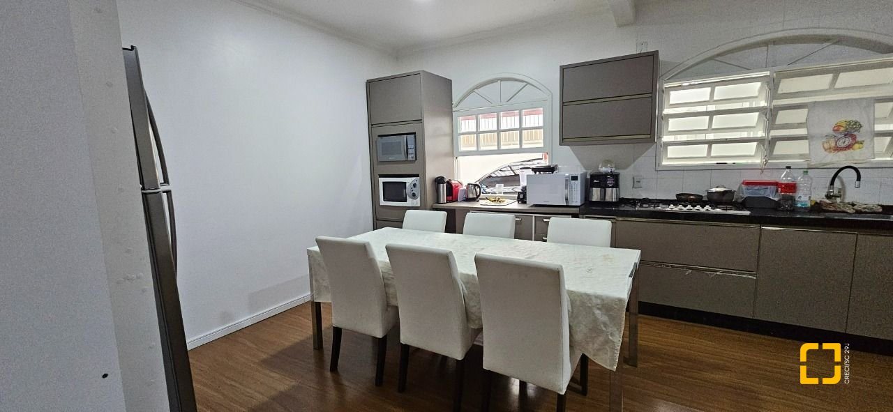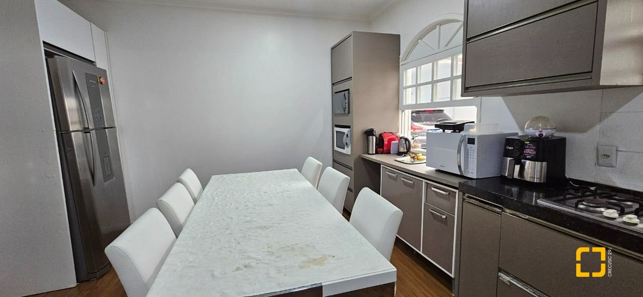 O imóvel possui 200 m² de área construída, distribuídos em salas de estar e jantar, cozinha, área de serviço, 4 quartos, sendo 1 suíte, banheiro social, banheiro de empregada e 3 vagas de garagem.
