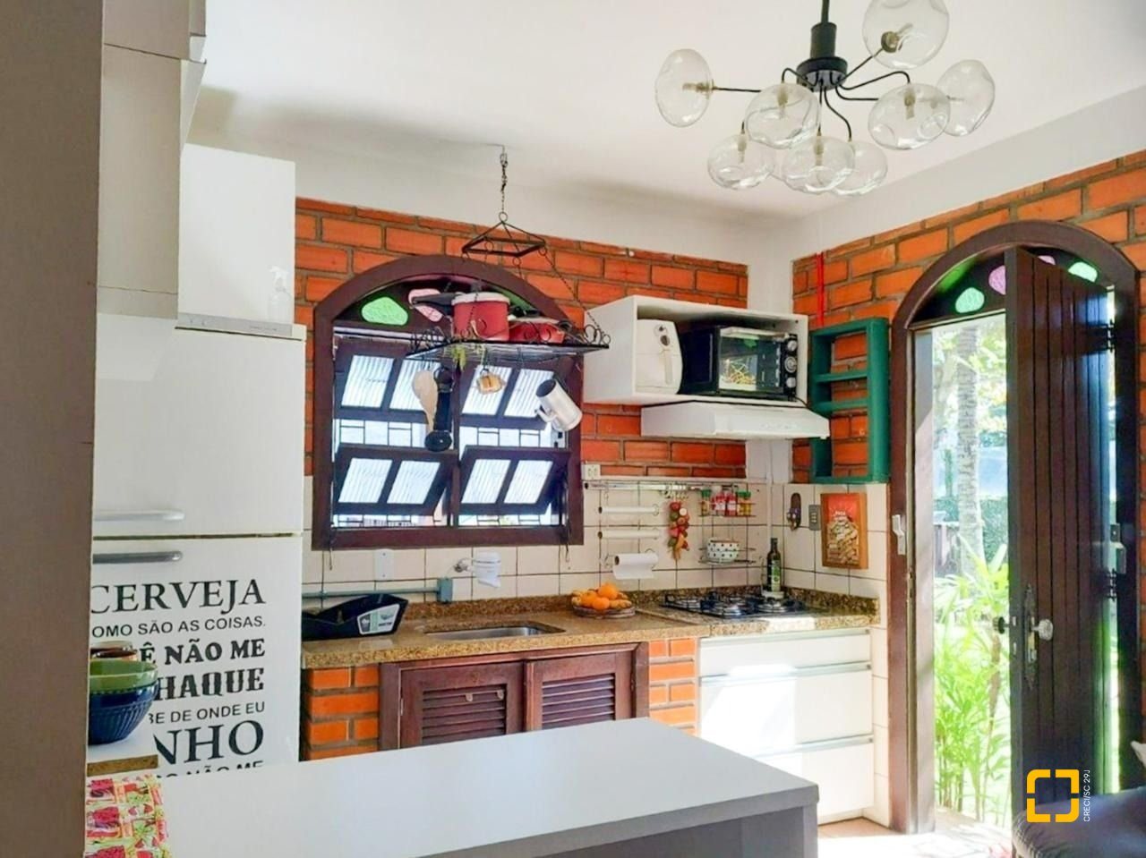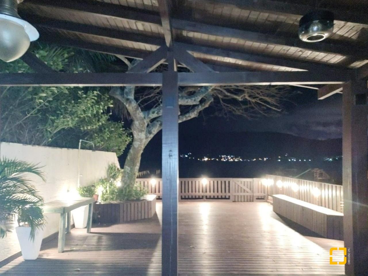 A segunda casa é disposta com 2 quartos, sala e cozinha integradas sendo a cozinha sob medida em estilo americano, banheiro social, aproximadamente 60 m². Na parte externa com mais um lavabo e área de serviço. Deck maravilhoso na beira da Lagoa da Conceição, com iluminação no entorno e um delicioso espaço para apreciar a vista que é de encher os olhos. É um espaço rústico e muito aconchegante. Ainda conta com uma piscina que pode ser aproveitada como um espaço de lazer incrível.