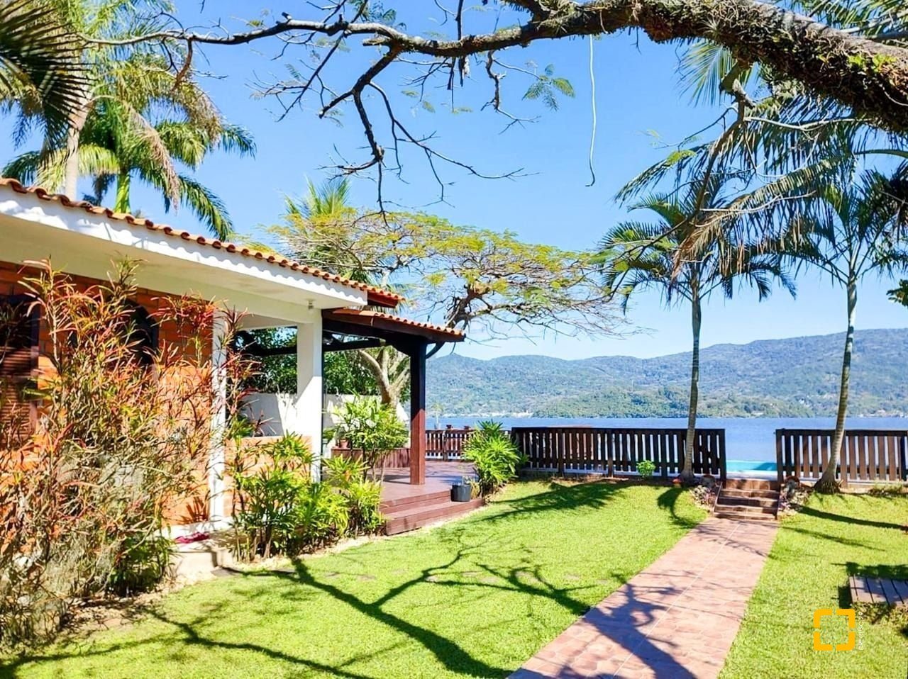 Brognoli Imóveis vende, em excelente localização, com vista exuberante, propriedade à beira da lagoa com 2 casas térreas construídas no bairro Lagoa da Conceição em Florianópolis, próximo a Avenida das Rendeiras.