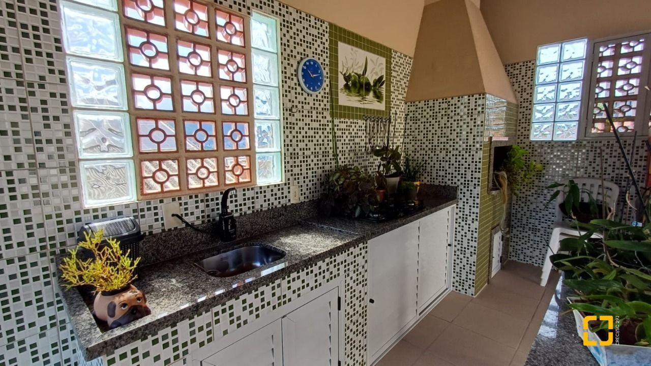 Para os momentos de lazer, o imóvel conta com um amplo espaço gourmet, equipado com churrasqueira a carvão, balcão e pia de apoio, ideal para confraternizações e encontros especiais.