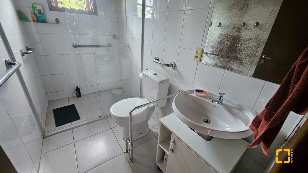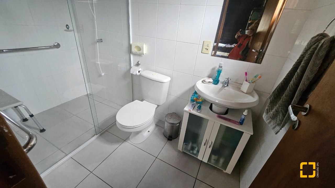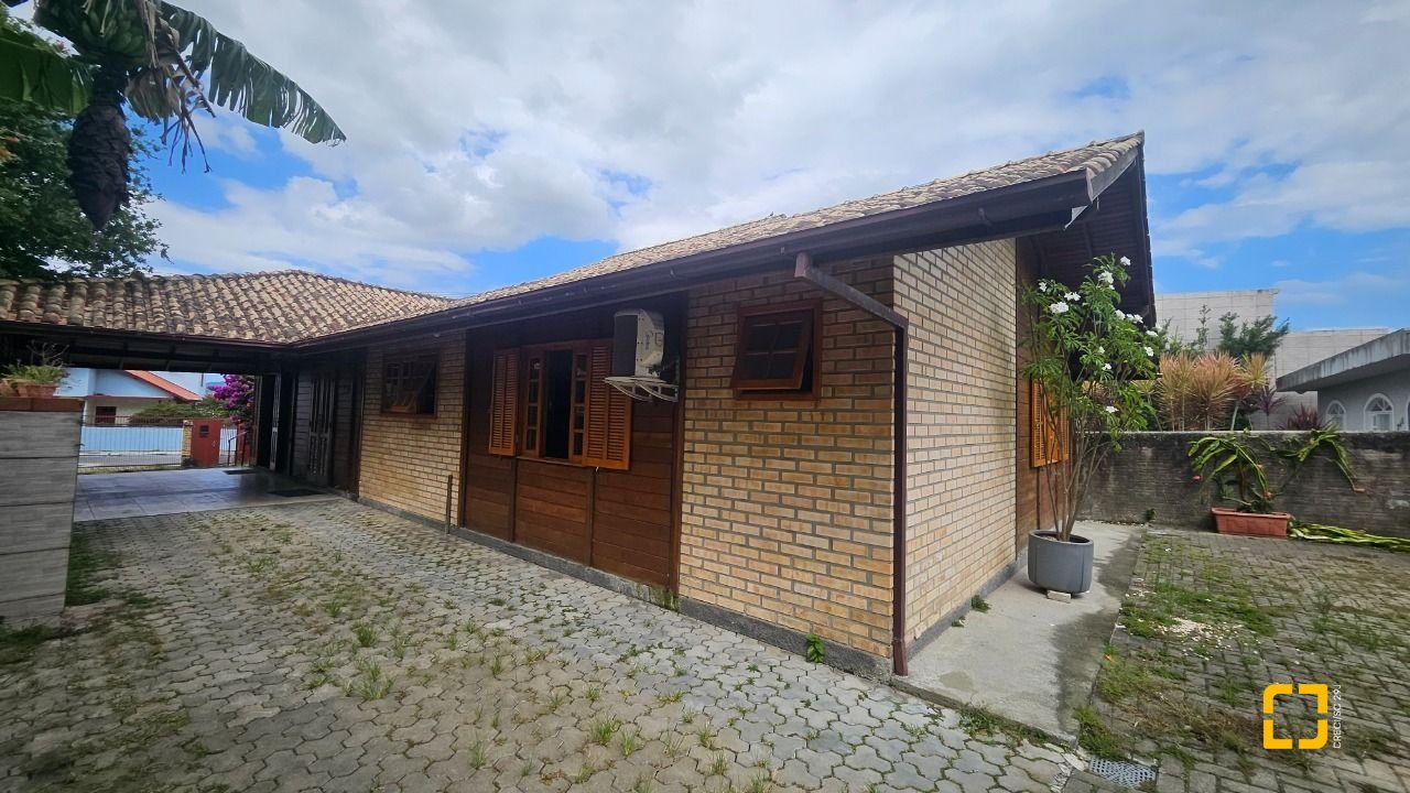 Edificação em excelente estado, de construção mista, sendo 117,54m² em alvenaria e 112,84m² de madeira nobre, estilo pré-fabricada, contendo ampla sala para diversos ambientes, banheiro social, cozinha com móveis planejados, escritório, 3 quartos sendo 2 suítes, ampla varanda que pode ser usada como garagem coberta. Amplo terreno com 711,50m² em localização espetacular, às margens da beira mar, com acesso rápido para a Beira Mar de São José, mercado Bistek e à Prefeitura de São José.