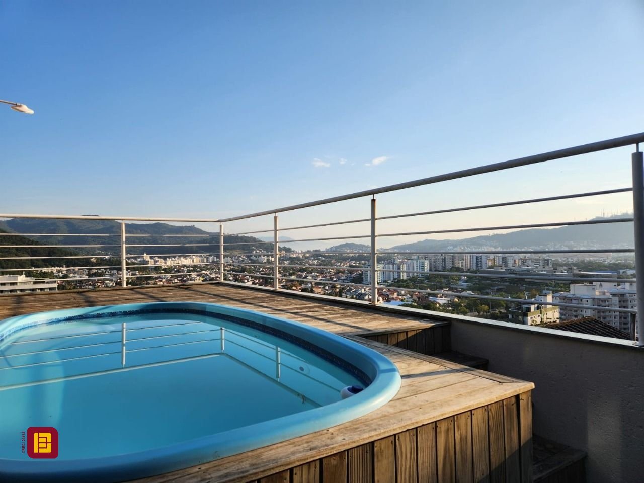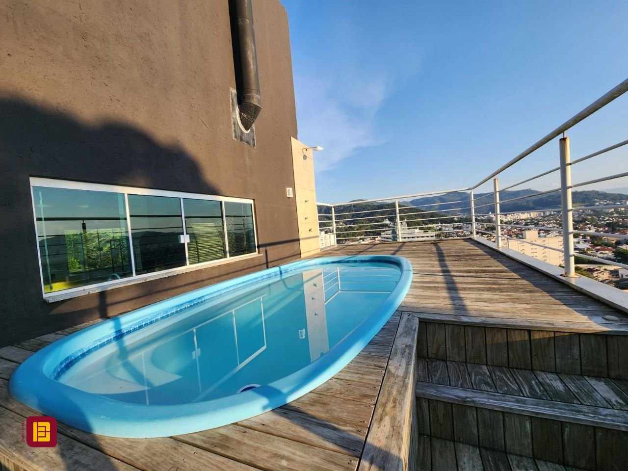 Espaço de lazer, com piscina, ampla sala com quarto e banheiro, tudo com uma vista panorâmica do bairro, entrada independente da casa para poder receber com privacidade e segurança.