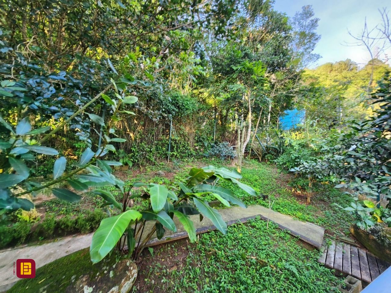 Pátio externo com árvores frutíferas.