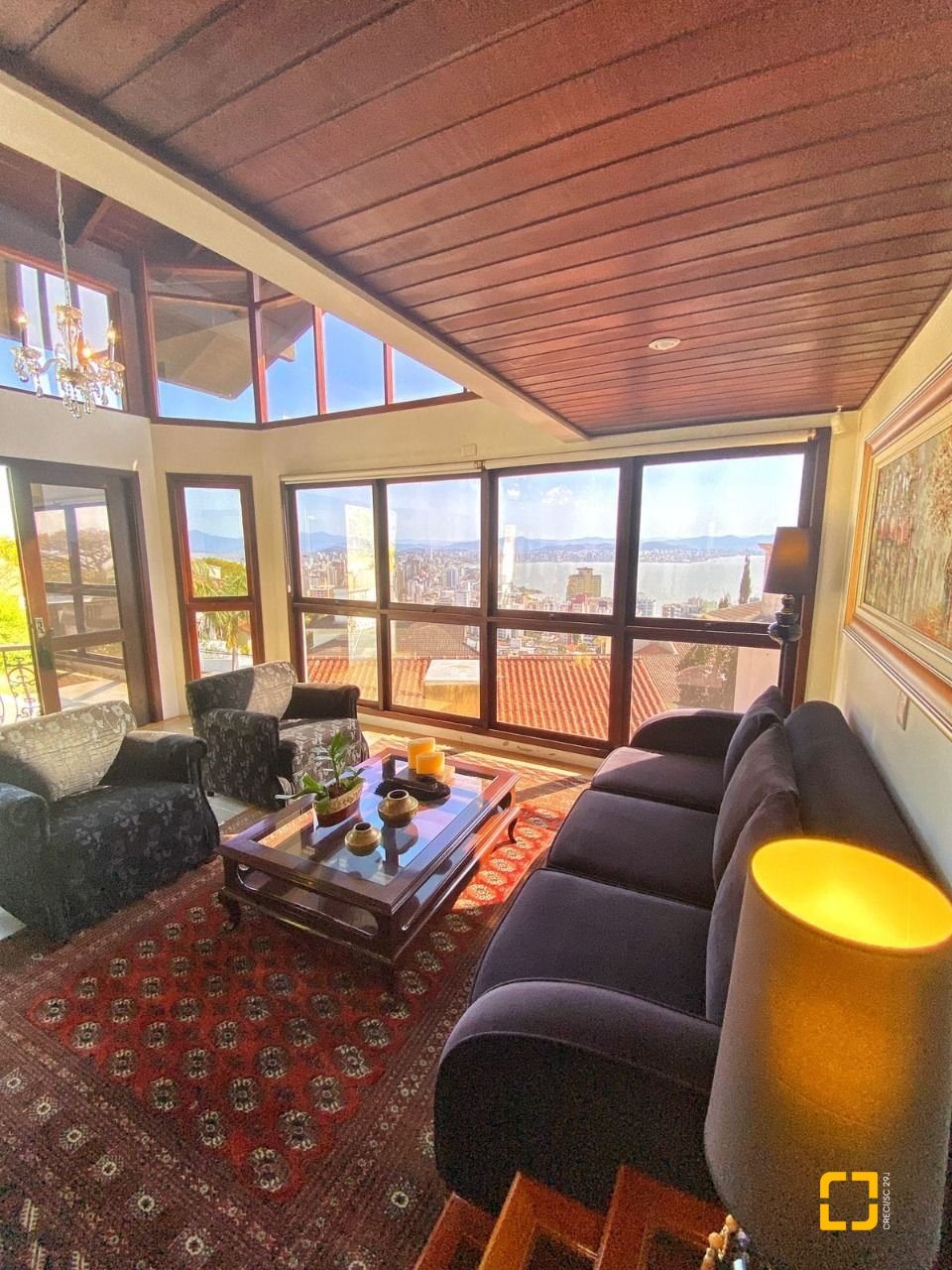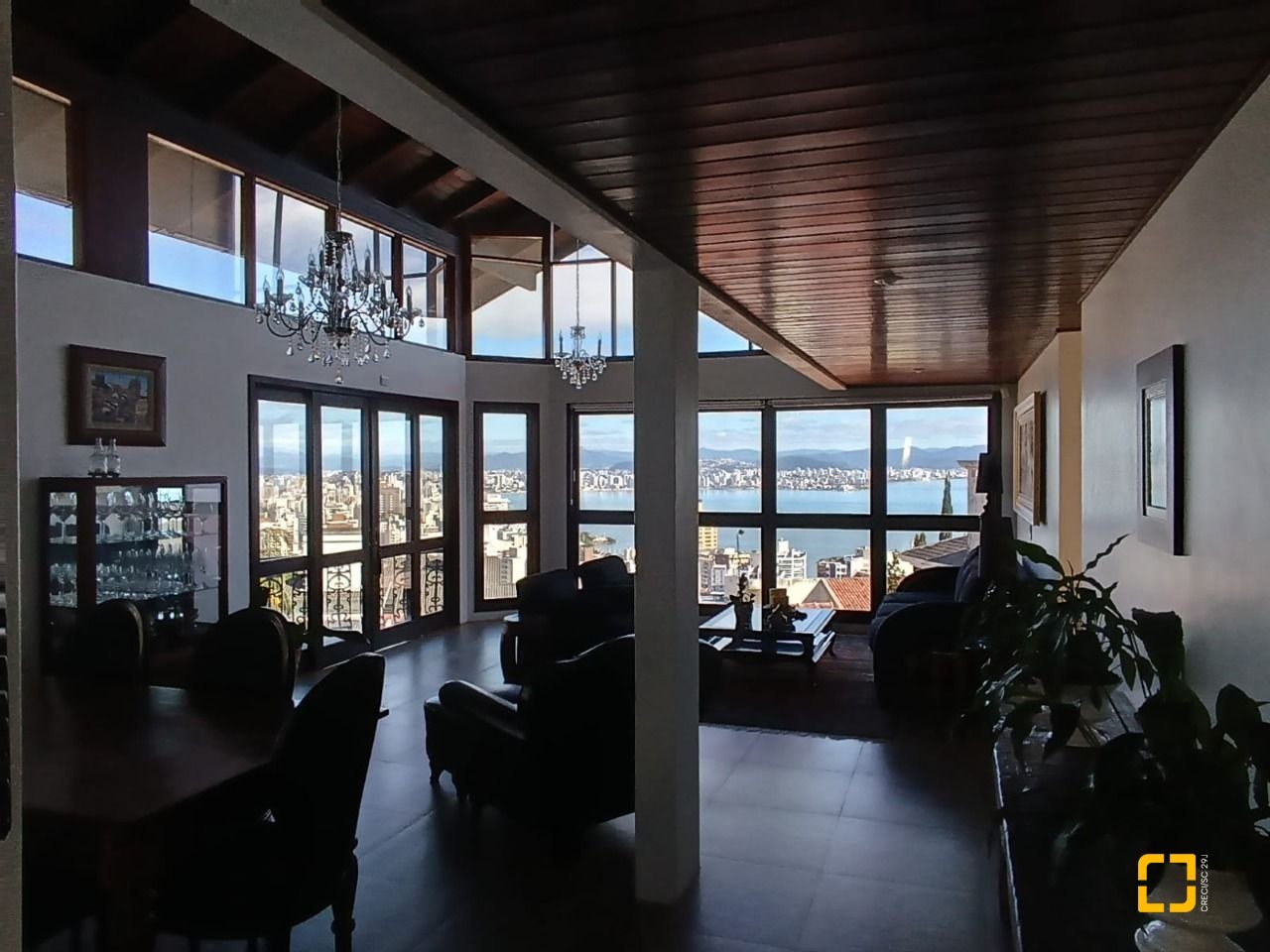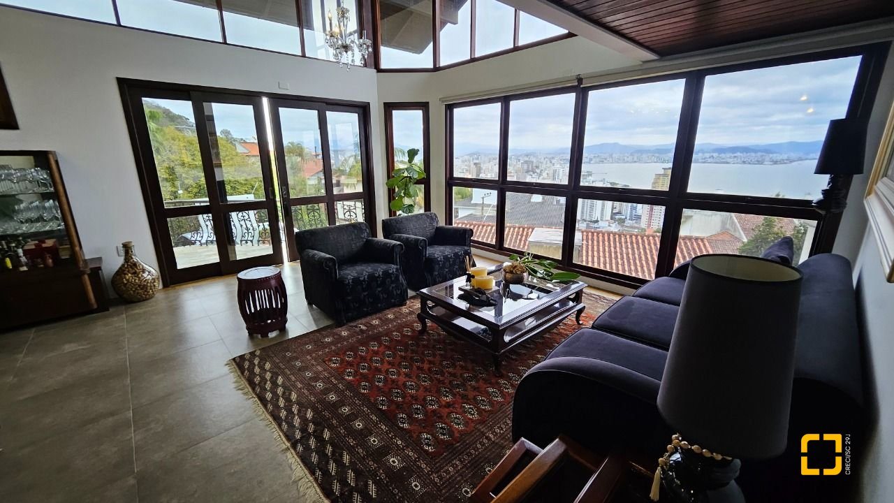 Casa residencial com 4 suítes à venda no local chamado Morro da Cruz, Centro de Florianópolis. Esta casa proporciona uma vista considerada um cartão postal da cidade. Edificada em região alta, o que possibilita uma indevassável vista panorâmica para a cidade, para o mar e permite apreciar o lindo por do sol da Ilha. Na parte térrea da residência, um espaço de convivência amplo, reunindo sala de estar e jantar, com uma bela sacada que proporciona apreciar um maravilhoso por do sol, no mar da Beiramar Norte, lavabo, sala de tv, cozinha, lavanderia e suíte com mini closet. No piso superior, 3 suítes, todas com vista mar, sendo uma delas, master com closet e sacada e linda vista panorâmica. No subsolo, um escritório, ante sala, lavanderia, canil, horta, e uma área de festas com churrasqueira. Possui sistema de monitoramento, alarme, cerca elétrica, captação de água da chuva e 6 vagas de garagem.