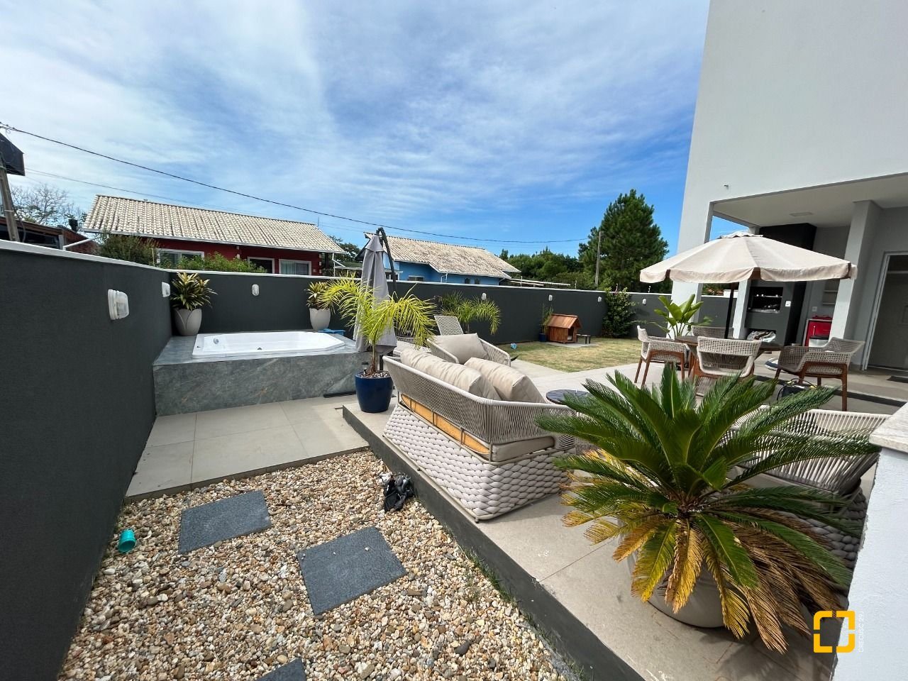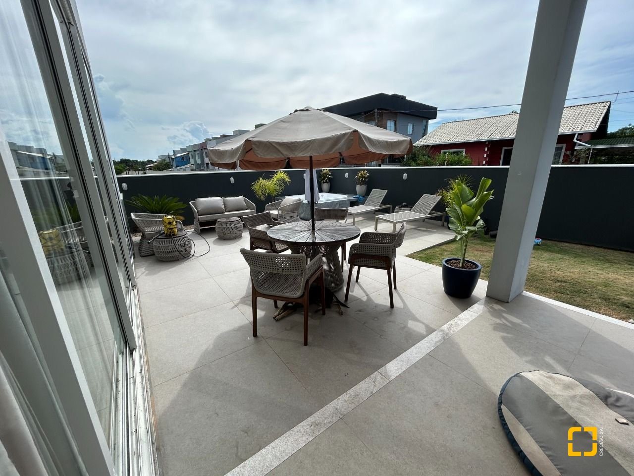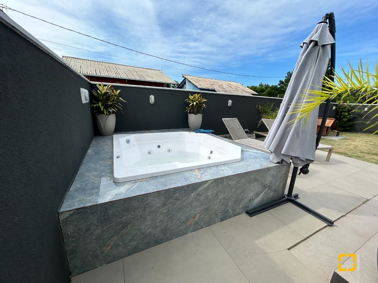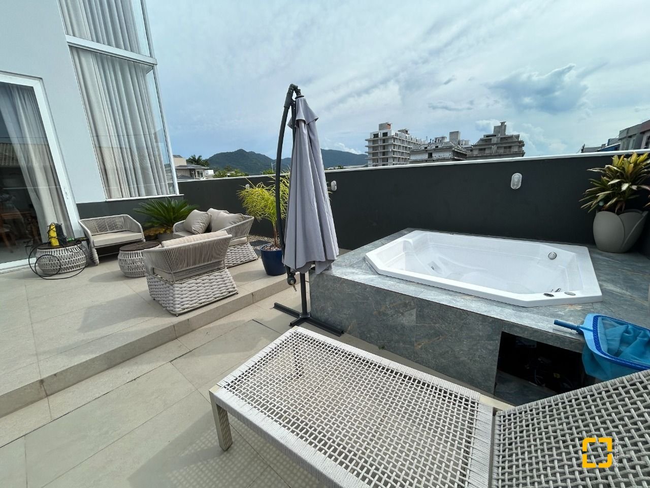 A área externa é um verdadeiro refúgio particular, elegante, reservado e convidativo, com hidromassagem que transforma o final do dia em um ritual de relaxamento.