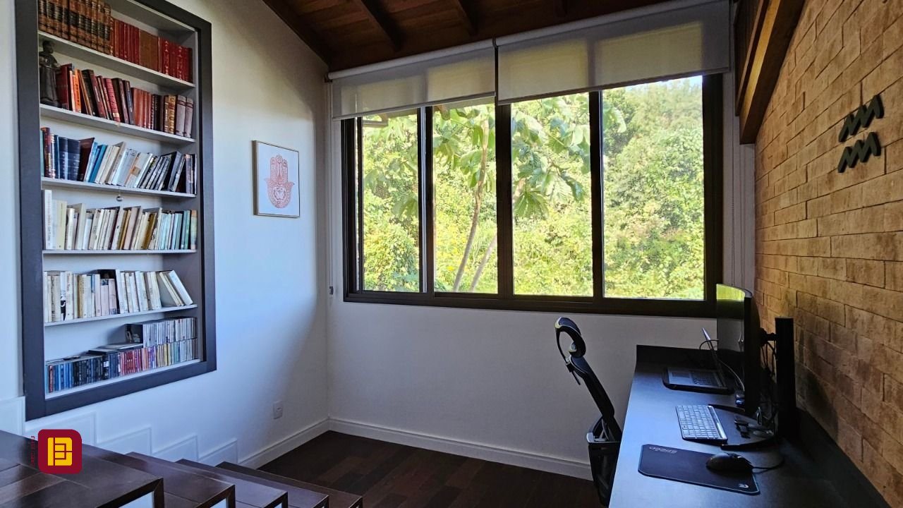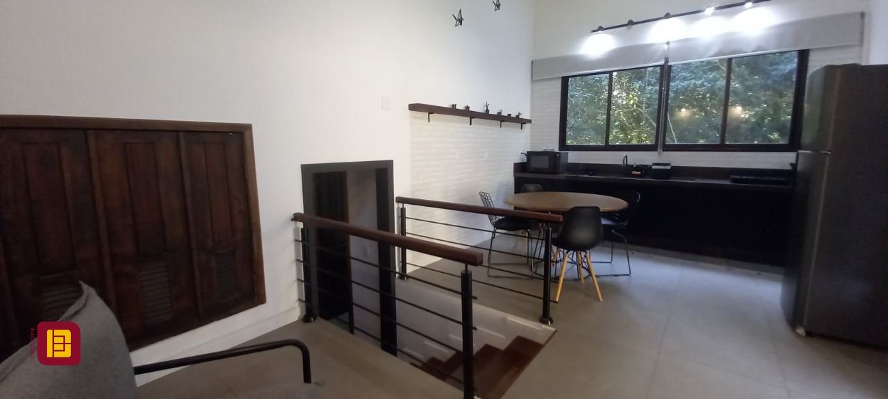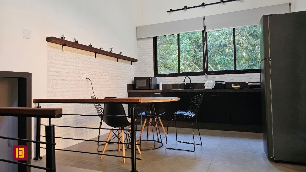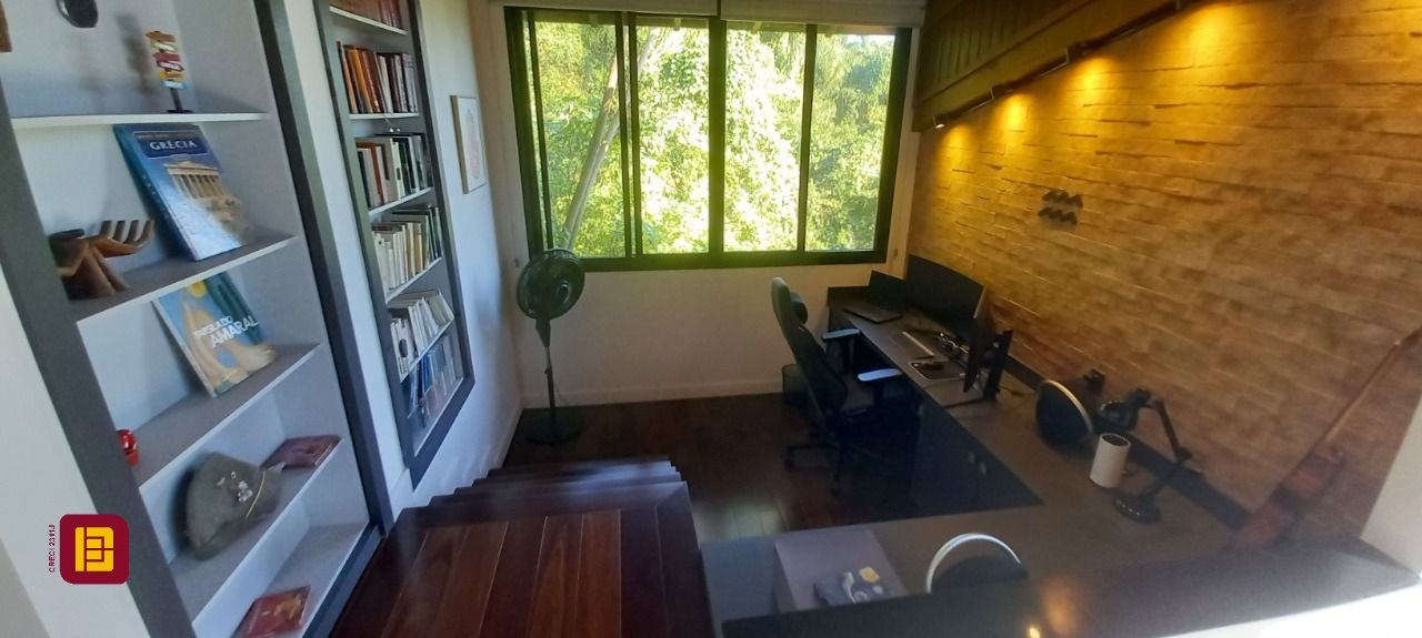Uma sala com lareira integrada a mais uma cozinha, varanda com jacuzzi, sala de estar, suíte com banheira e chuveiro duplo, lavanderia e um ótimo escritório. Tudo isso contemplando a linda Lagoa da Conceição.