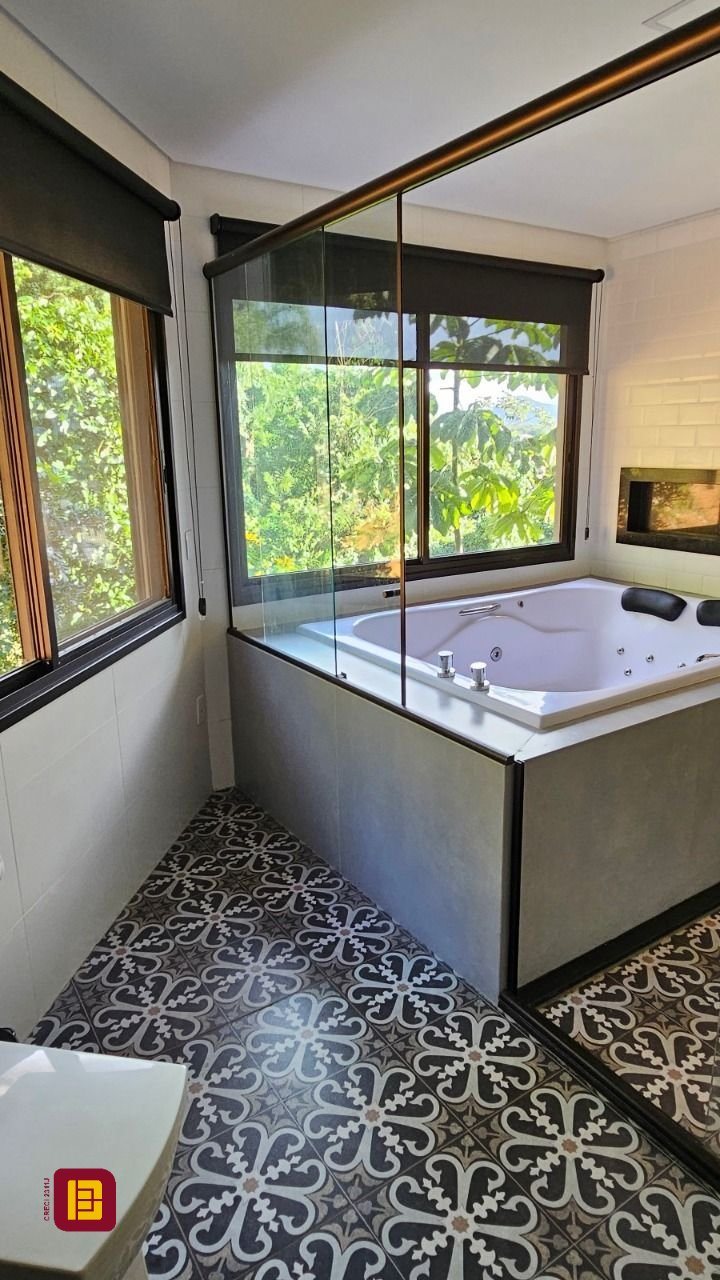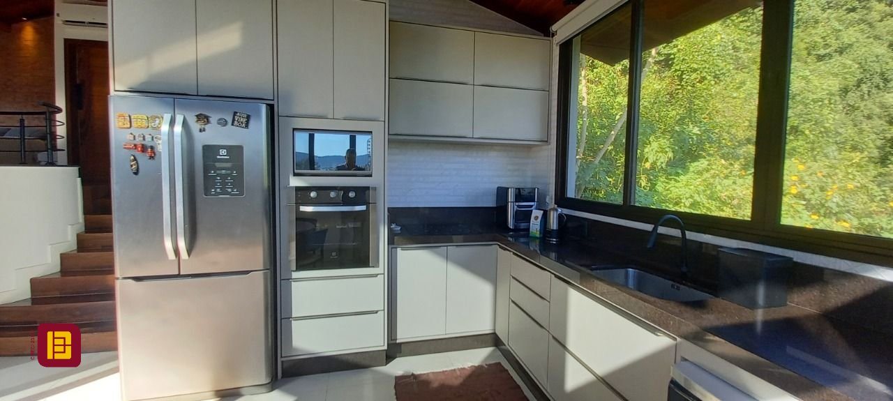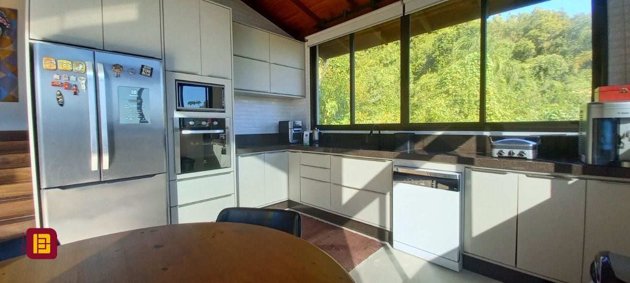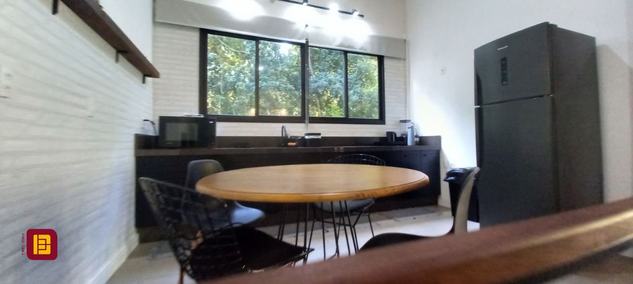 Uma sala com lareira integrada a mais uma cozinha, varanda com jacuzzi, sala de estar, suíte com banheira e chuveiro duplo, lavanderia e um ótimo escritório. Tudo isso contemplando a linda Lagoa da Conceição.