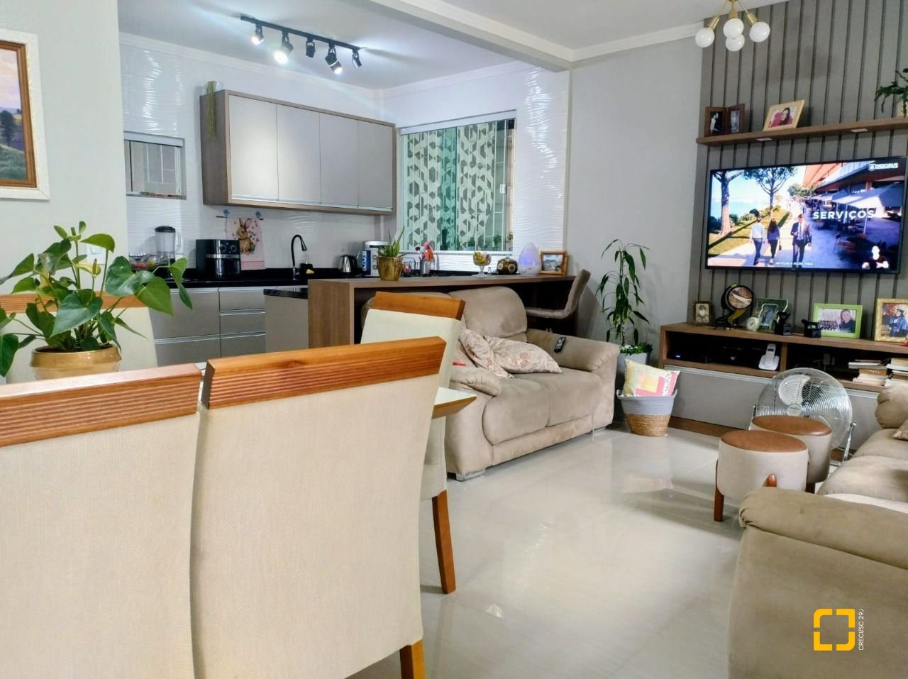 O imóvel conta com 3 dormitórios, sendo 1 suíte, além de lavabo e dispensa, oferecendo funcionalidade para o dia a dia.