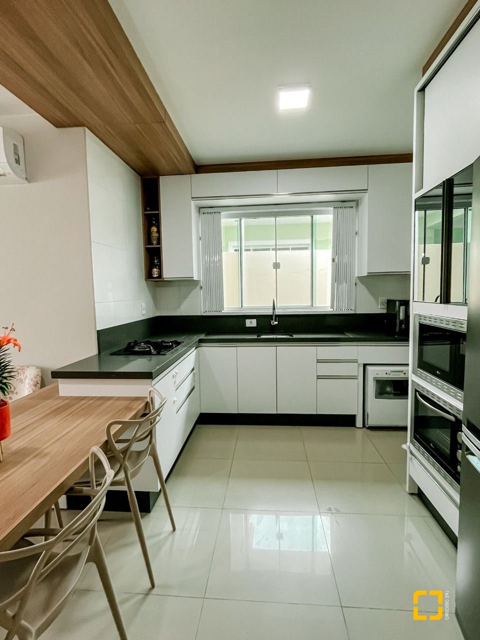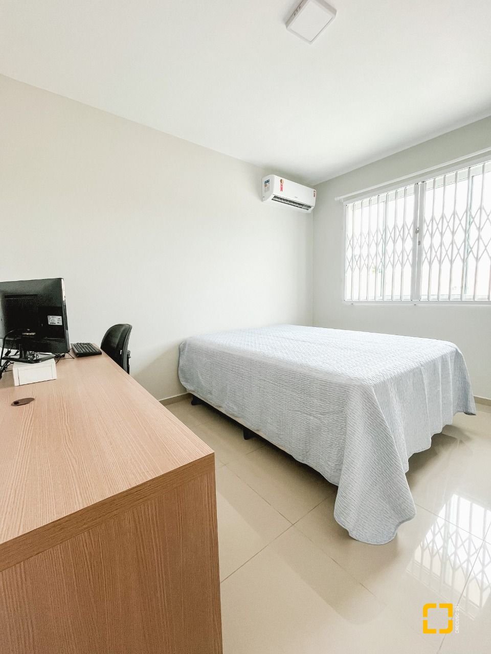 Imóvel com cozinha planejada, guarda roupas embutido, escritório montado, grades pantográficas, piso em porcelanato e calha em todo entorno da casa.