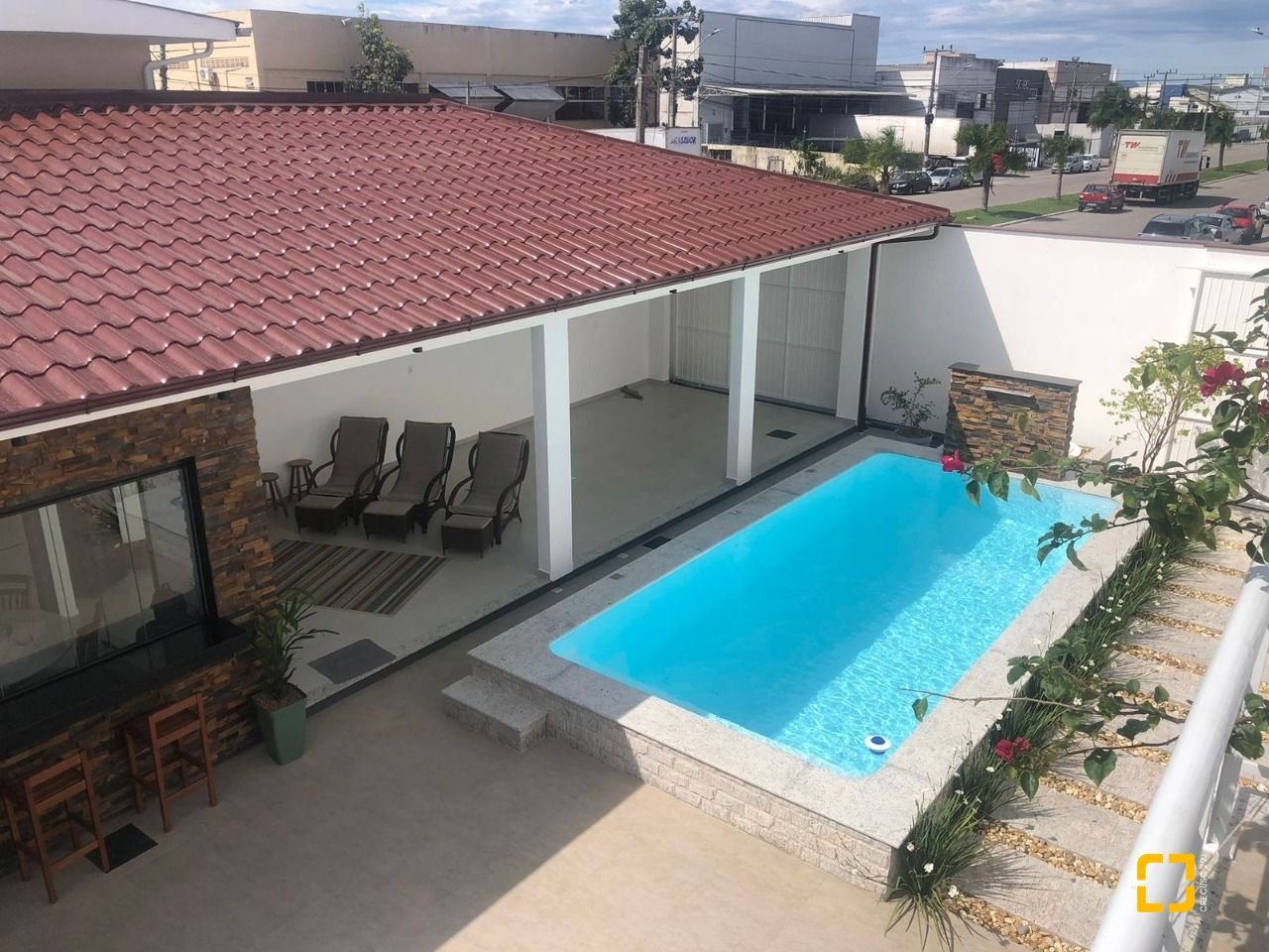 Salão no Segundo Piso: Espaço amplo com churrasqueira, perfeito para eventos e festas, aumentando o potencial de lucro.