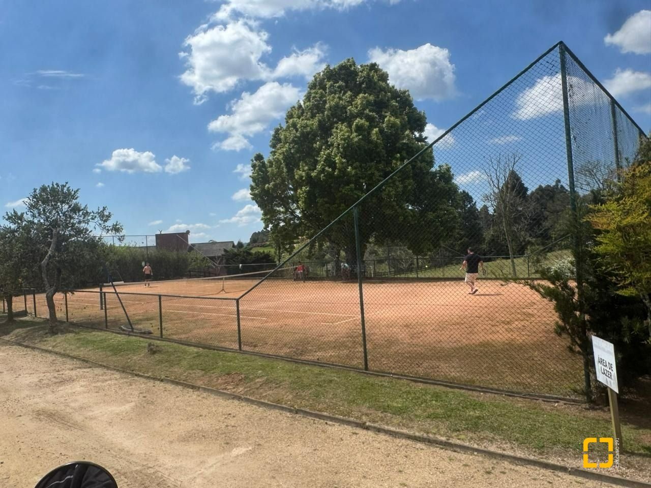 - Quadra de futebol (grama natural) e quadra de tênis (saibro)