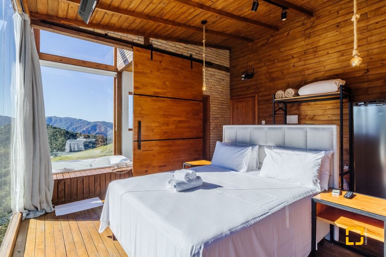 Natureza, paz e conforto em meio às montanhas em um chalé confortável e equipado na serra catarinense, localizado em Anitápolis, no Estância Vistas de Anitá, um lugar calmo, tranquilo, com ar puro e uma paisagem deslumbrante,