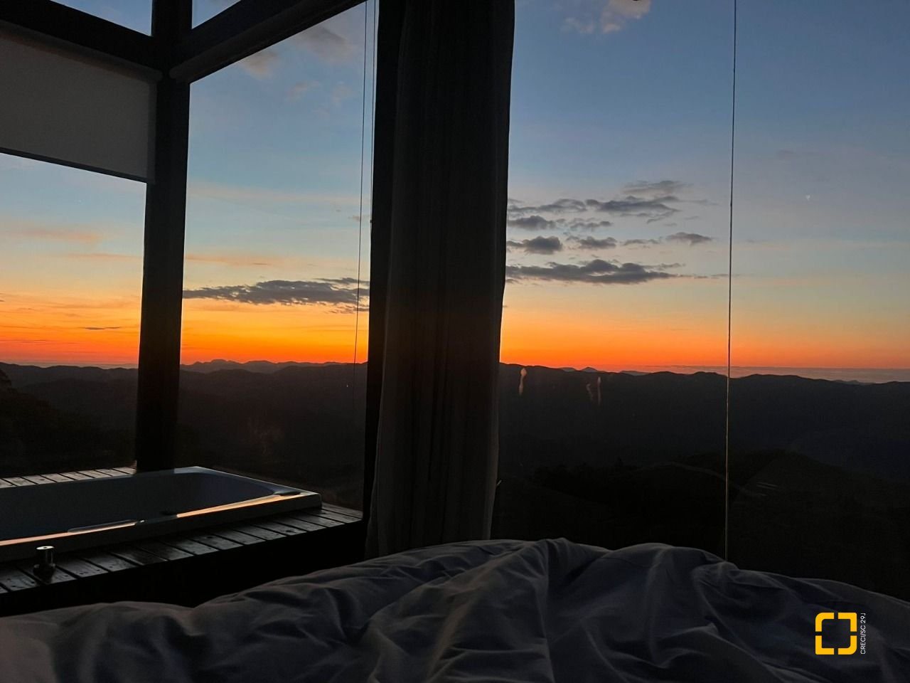 pôr do sol da varanda com uma vista panorâmica incrível, as noites frias de