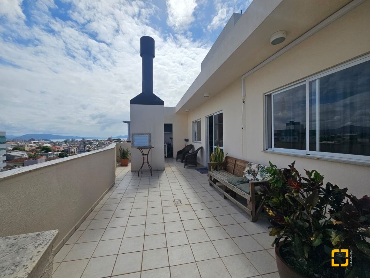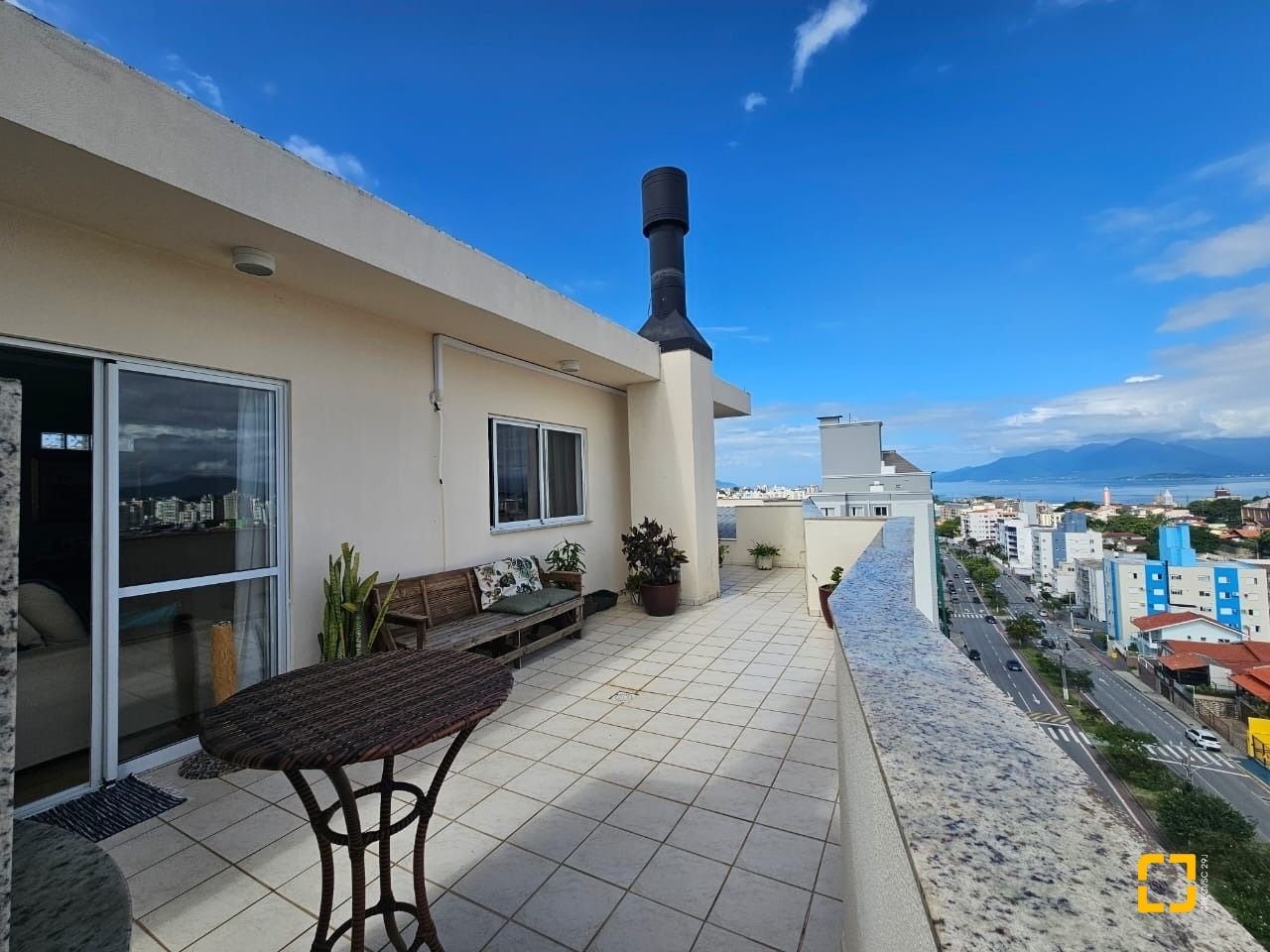 - Amplo terraço com churrasqueira a carvão e vista para o mar de Florianópolis e para o mar de São Jose;