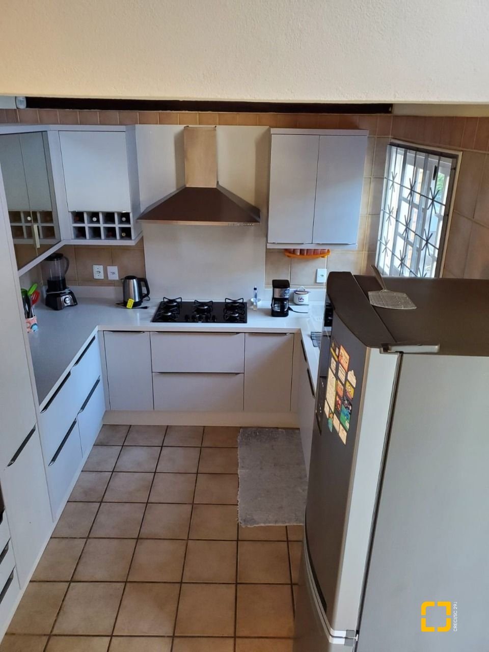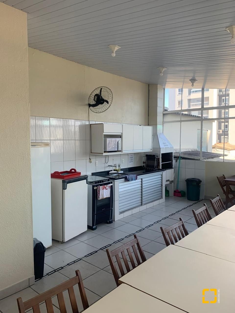 O condomínio conta com infraestrutura completa, incluindo churrasqueira, salão de festas e elevadores.