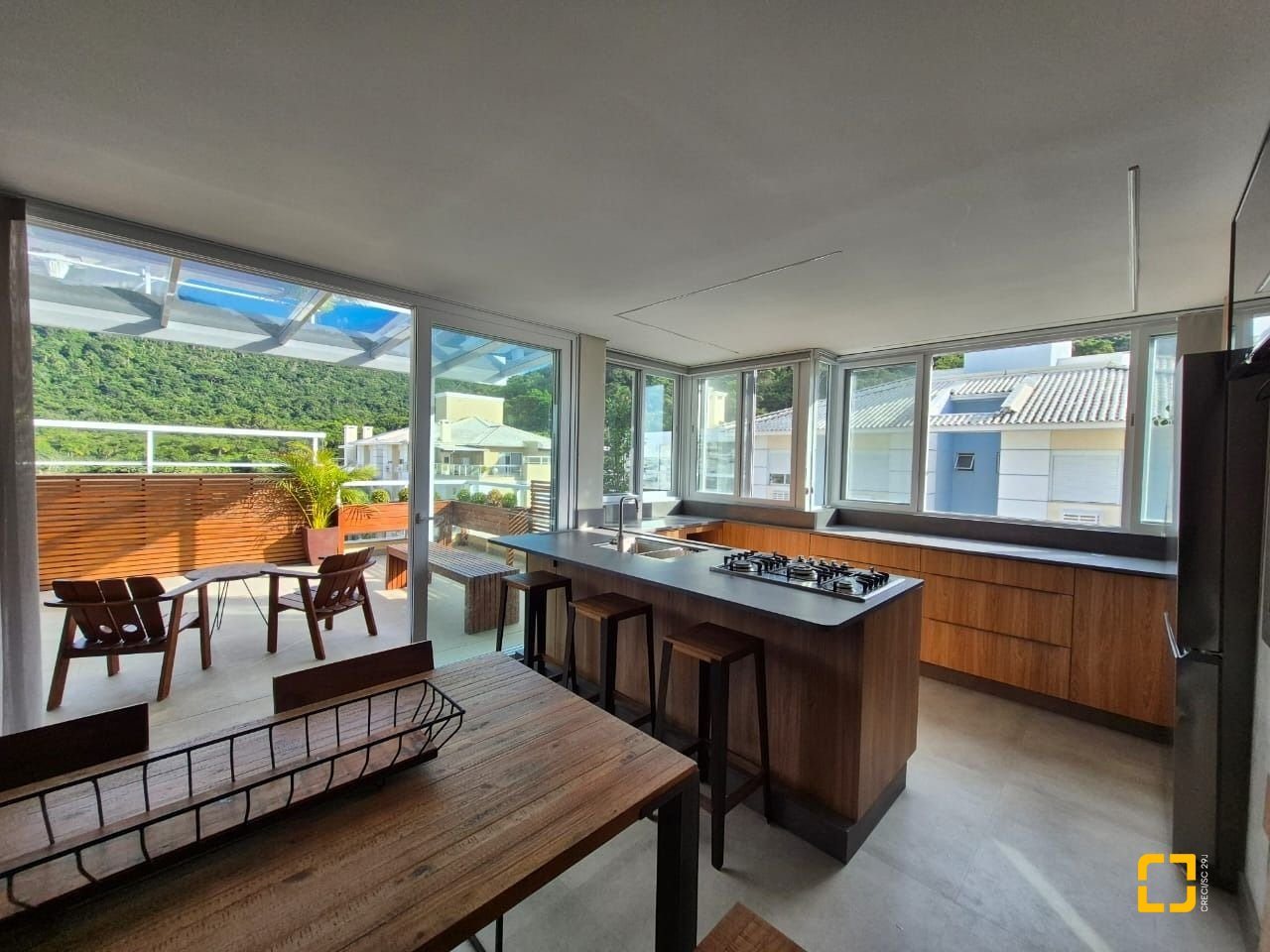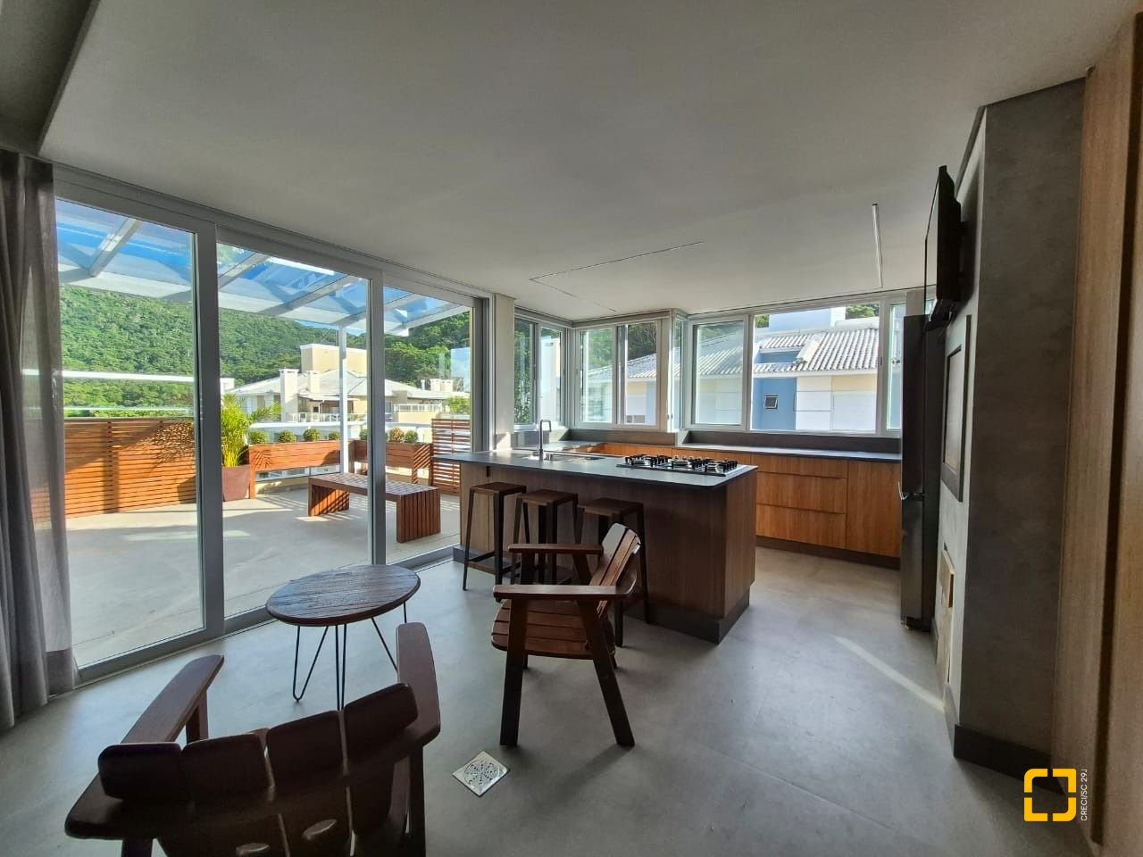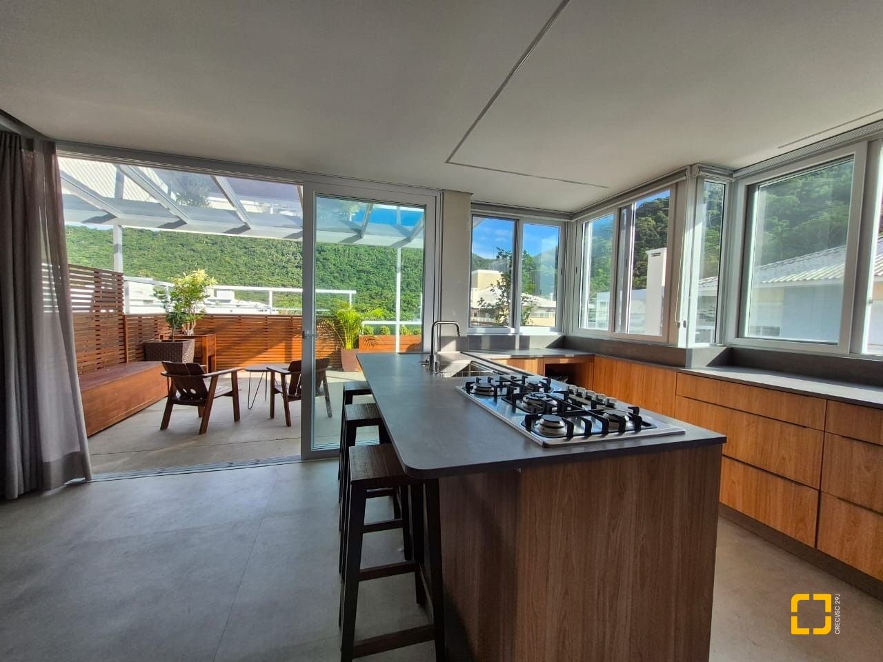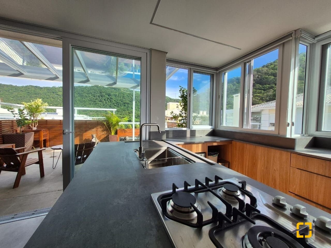 cozinha em área ampla de terraço;