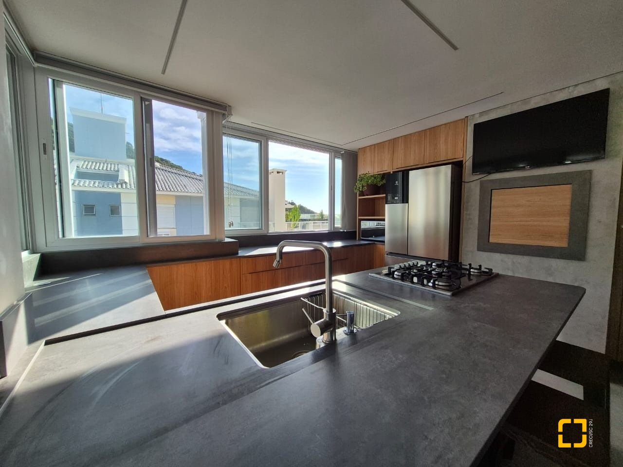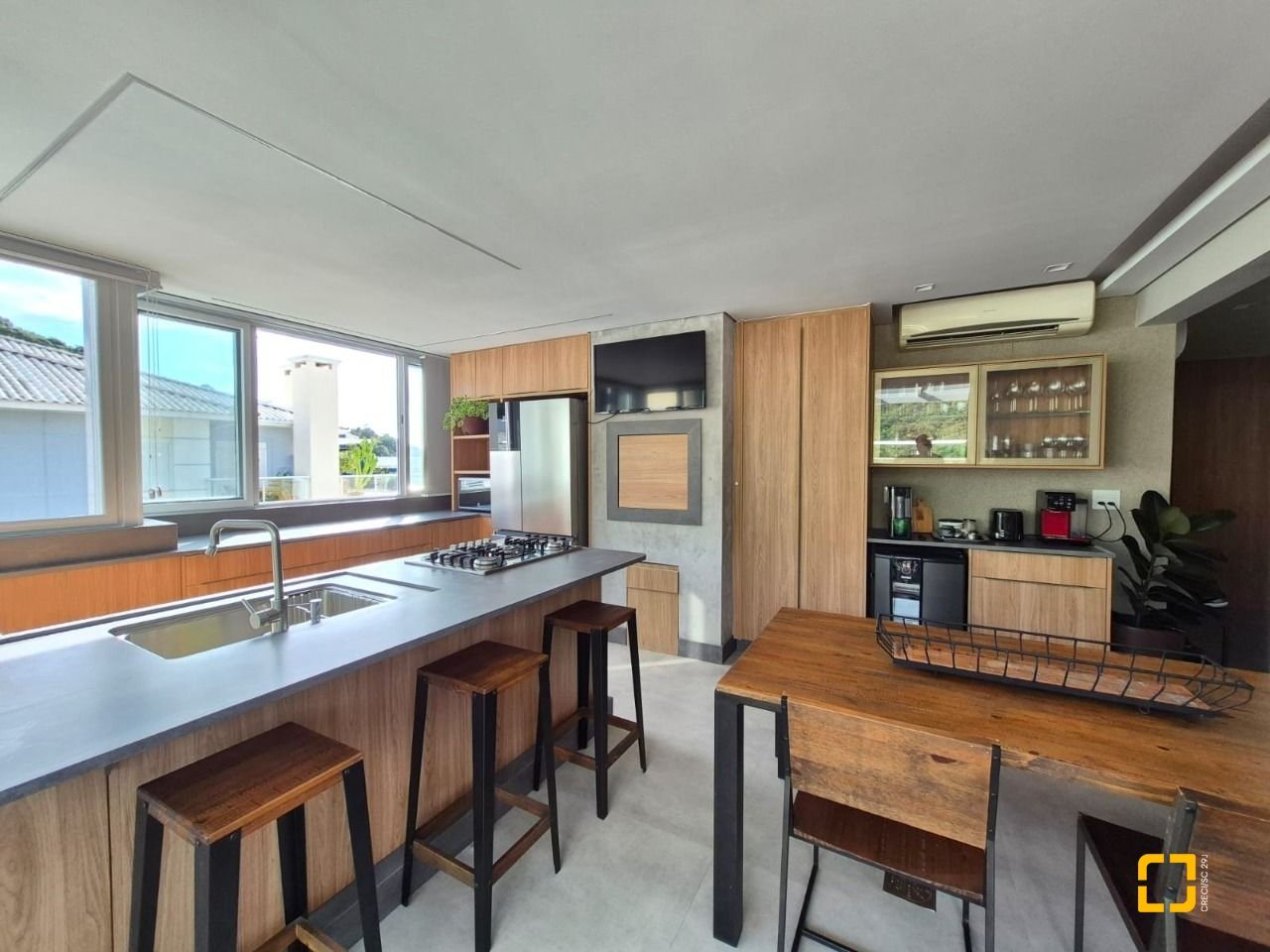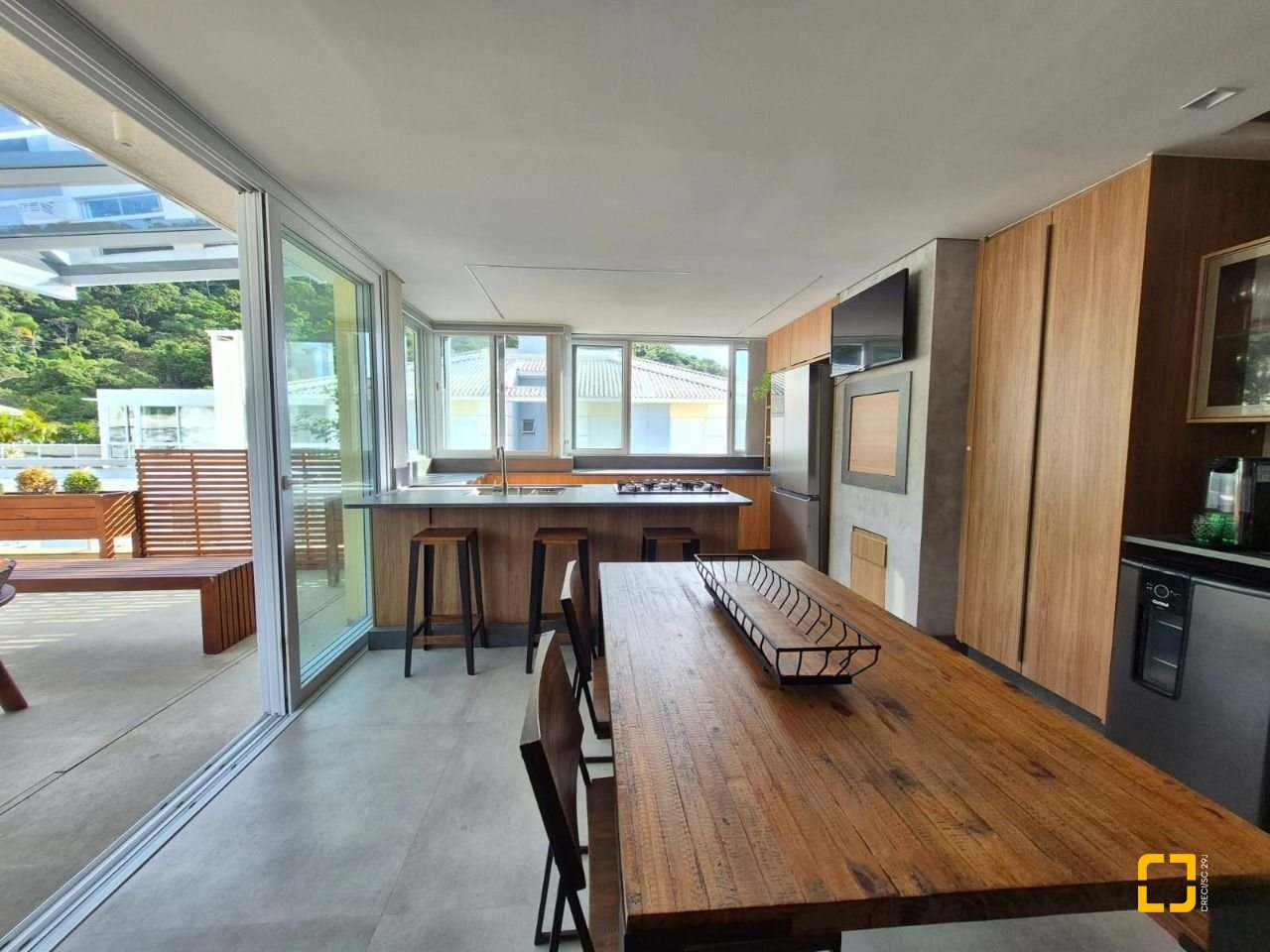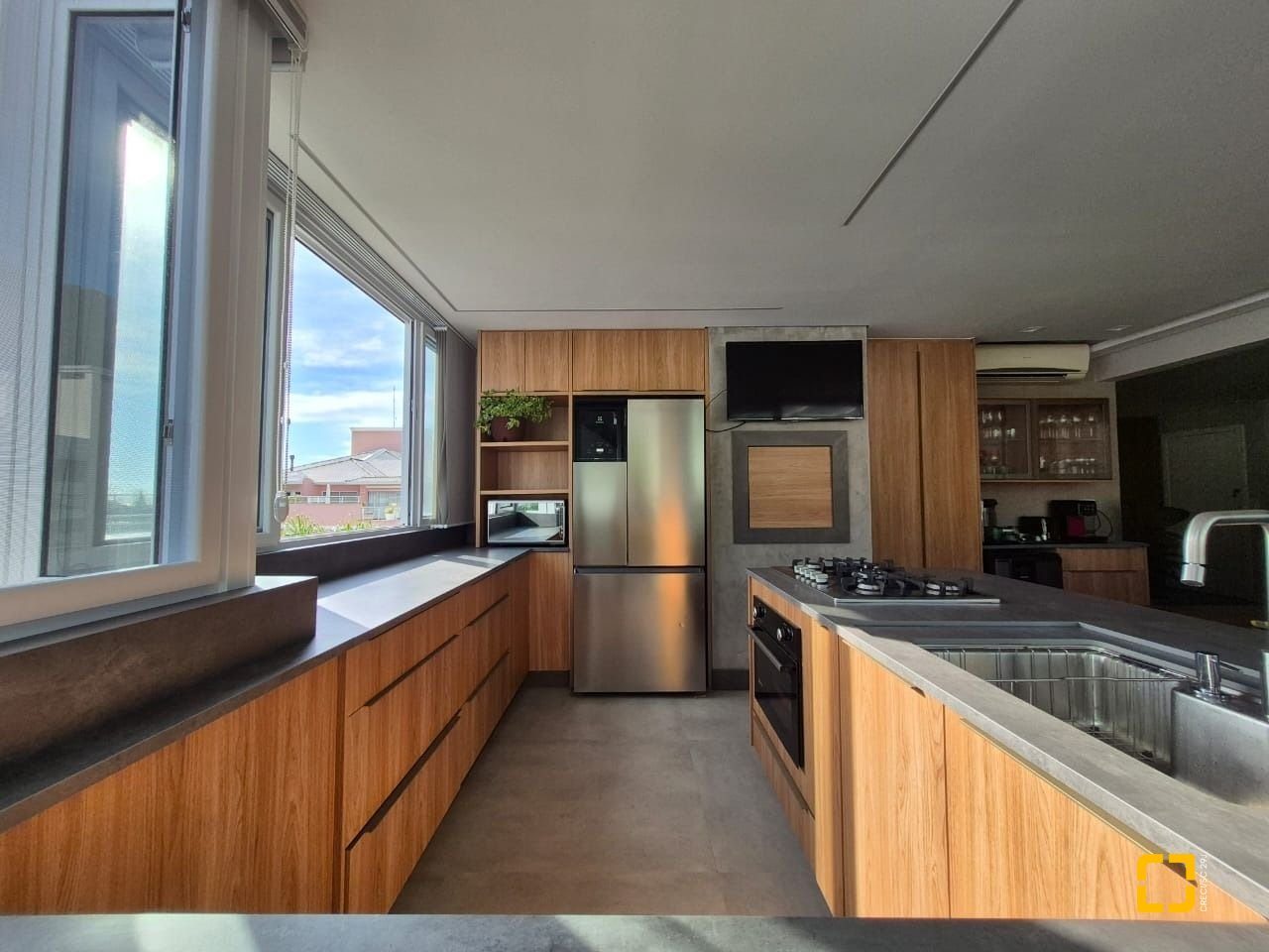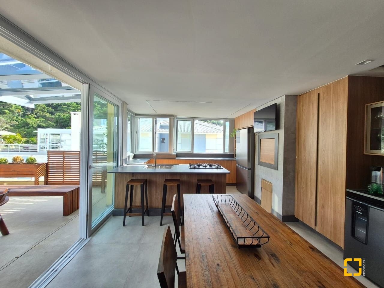 cozinha em área ampla de terraço;