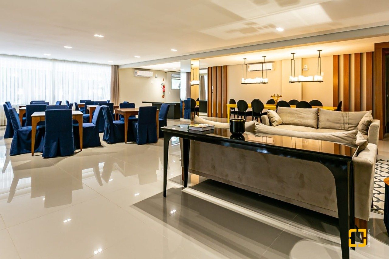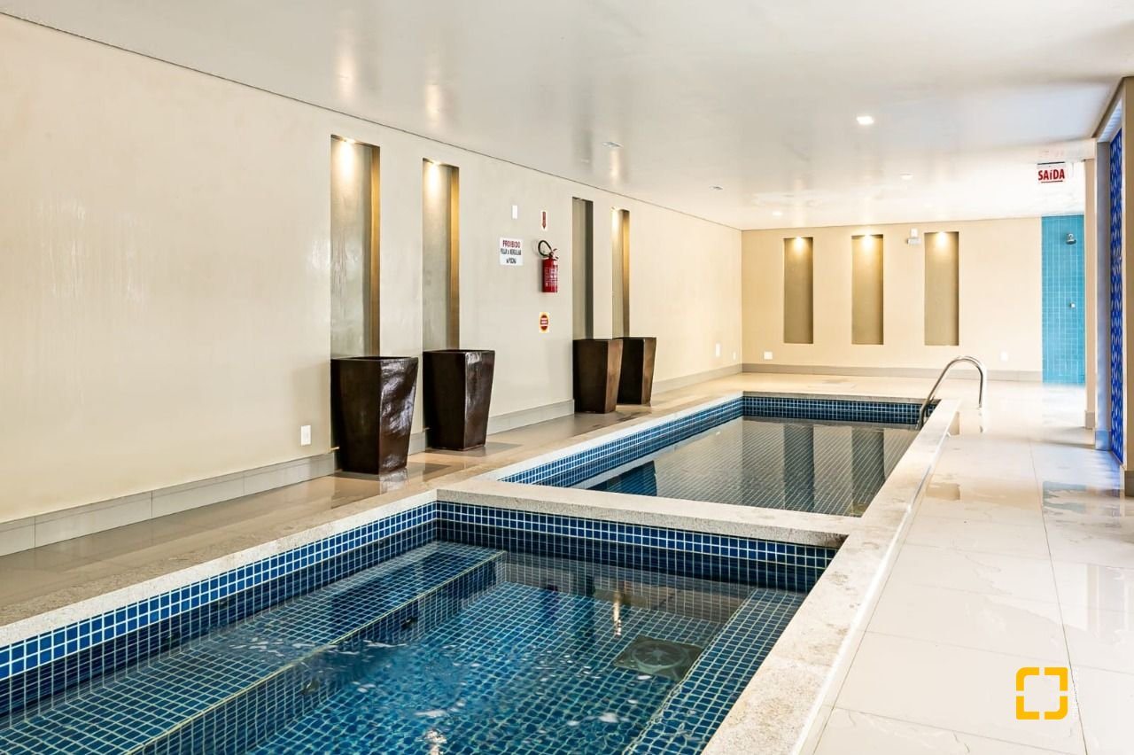 Condomínio com infraestrutura completa: espaço gourmet, salão de festas, piscina adulto e infantil, piscina aquecida, espaço off, champagne lounge, clube do vinho, adega, quadra poliesportiva, academia, sauna, board room, pet place, elevador e portaria 24 horas