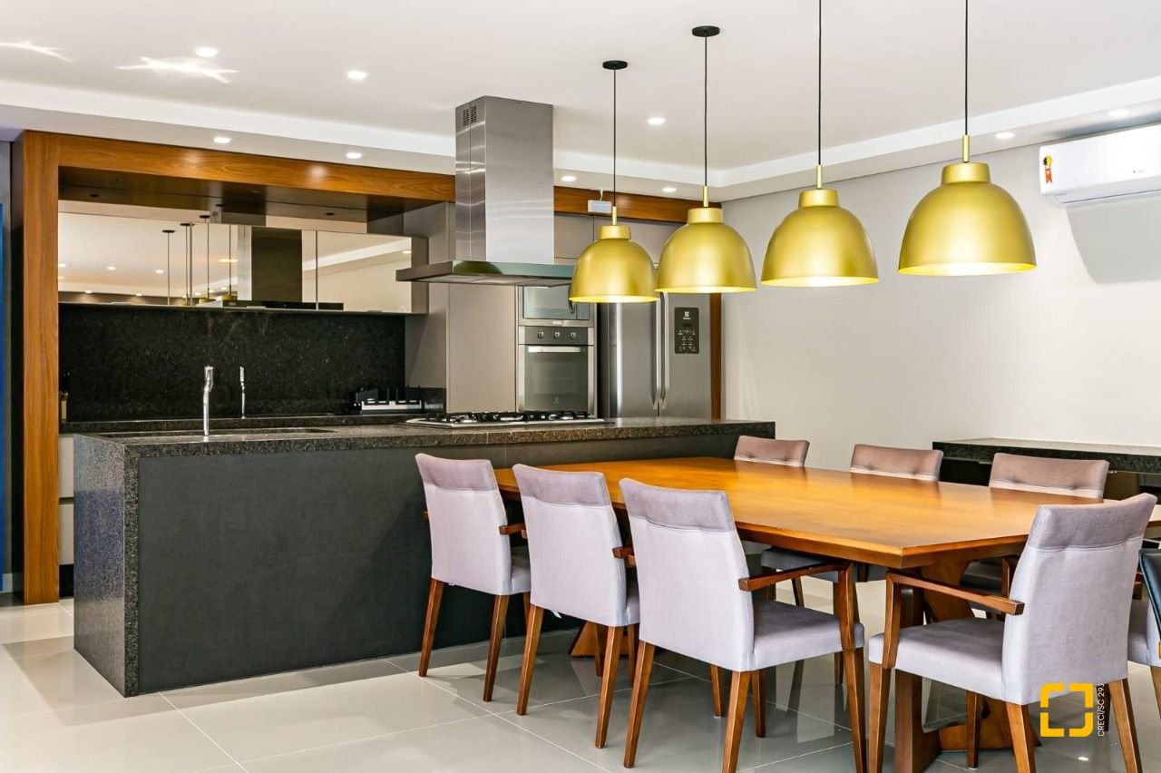 Móveis planejados em todos ambientes e área gourmet com fechamento Reike, que dá acesso ao pátio, e a piscina privativa ( aquecida), com vista da ilha do Campeche.