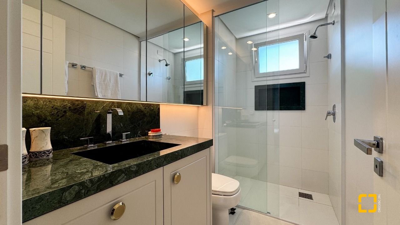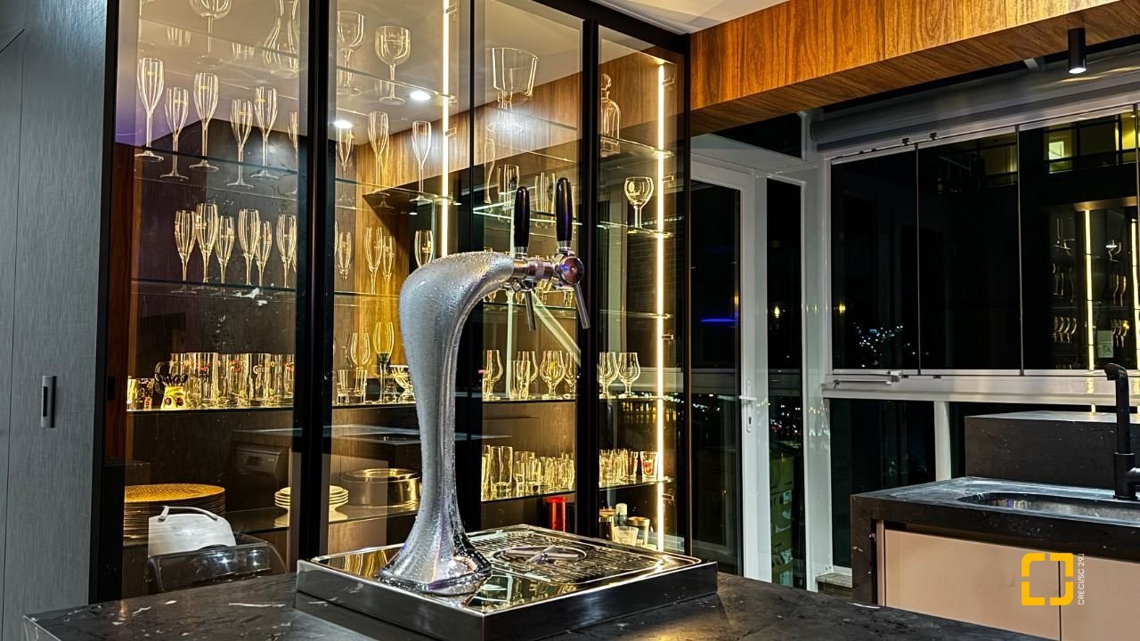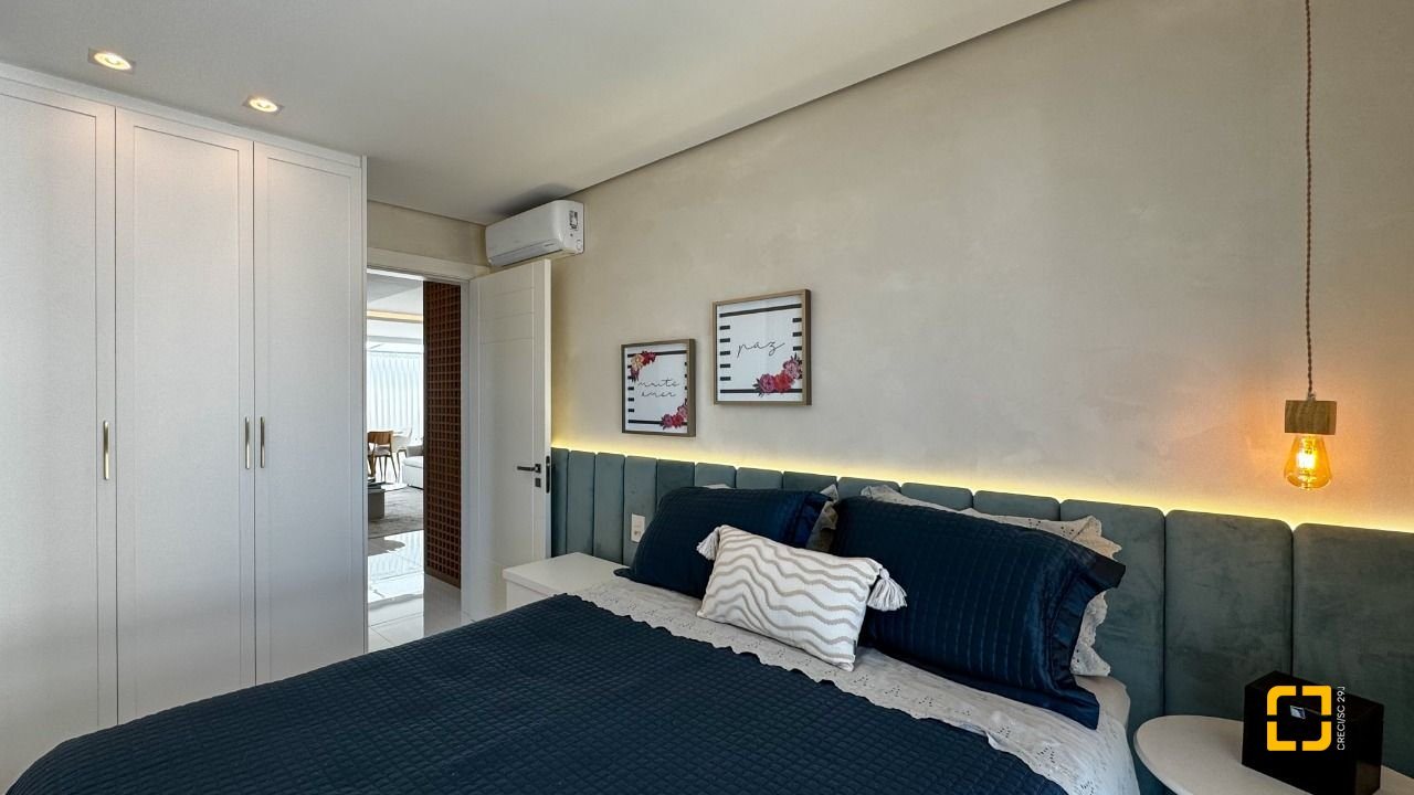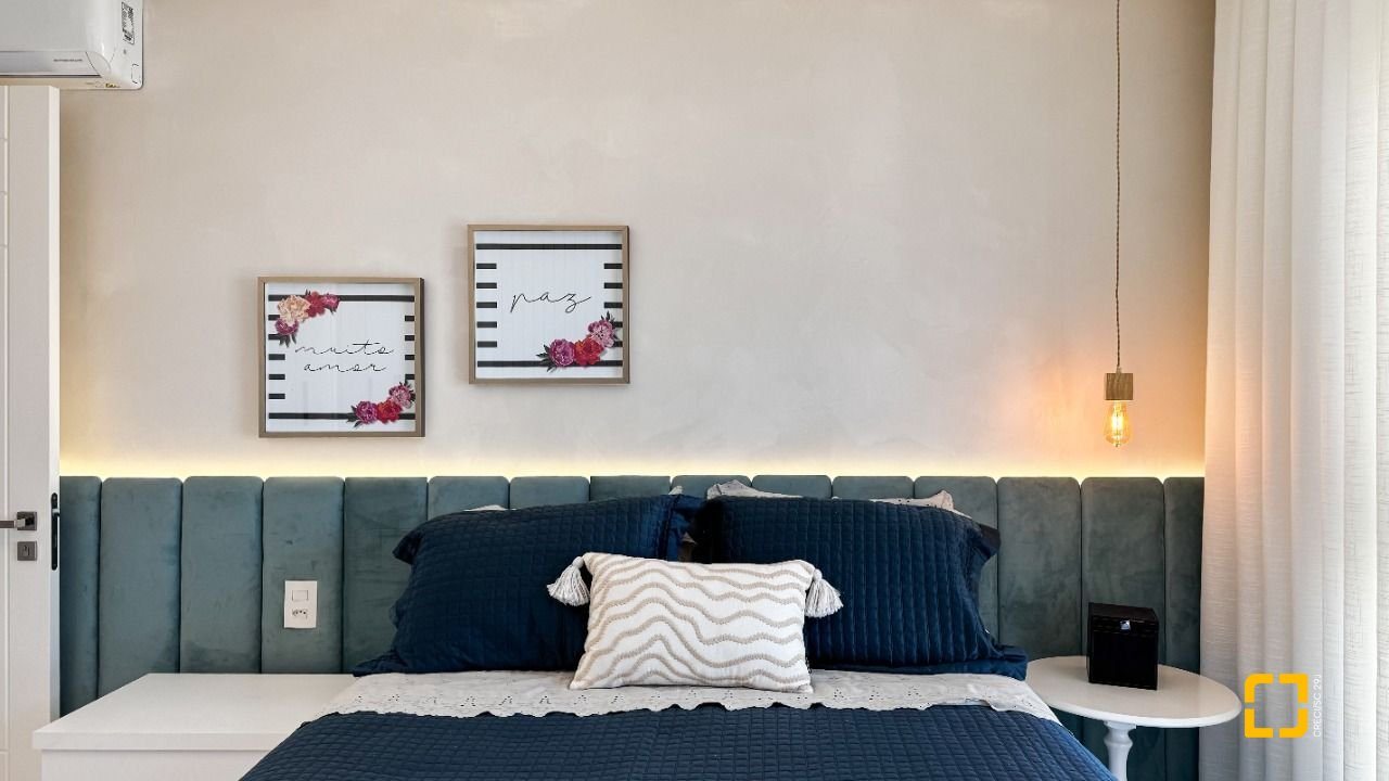 A cozinha planejada com armários, aliada à área de serviço independente e despensa, garante praticidade no dia a dia. O imóvel possui piso em porcelanato, persianas e vidros duplos nos dormitórios, além de aquecimento de água por aquecedor de passagem, preparação para automação residencial e ar-condicionado split em todos os ambientes. Permanece mobiliado com armários nas suítes, cozinha, banheiros e área de serviço.