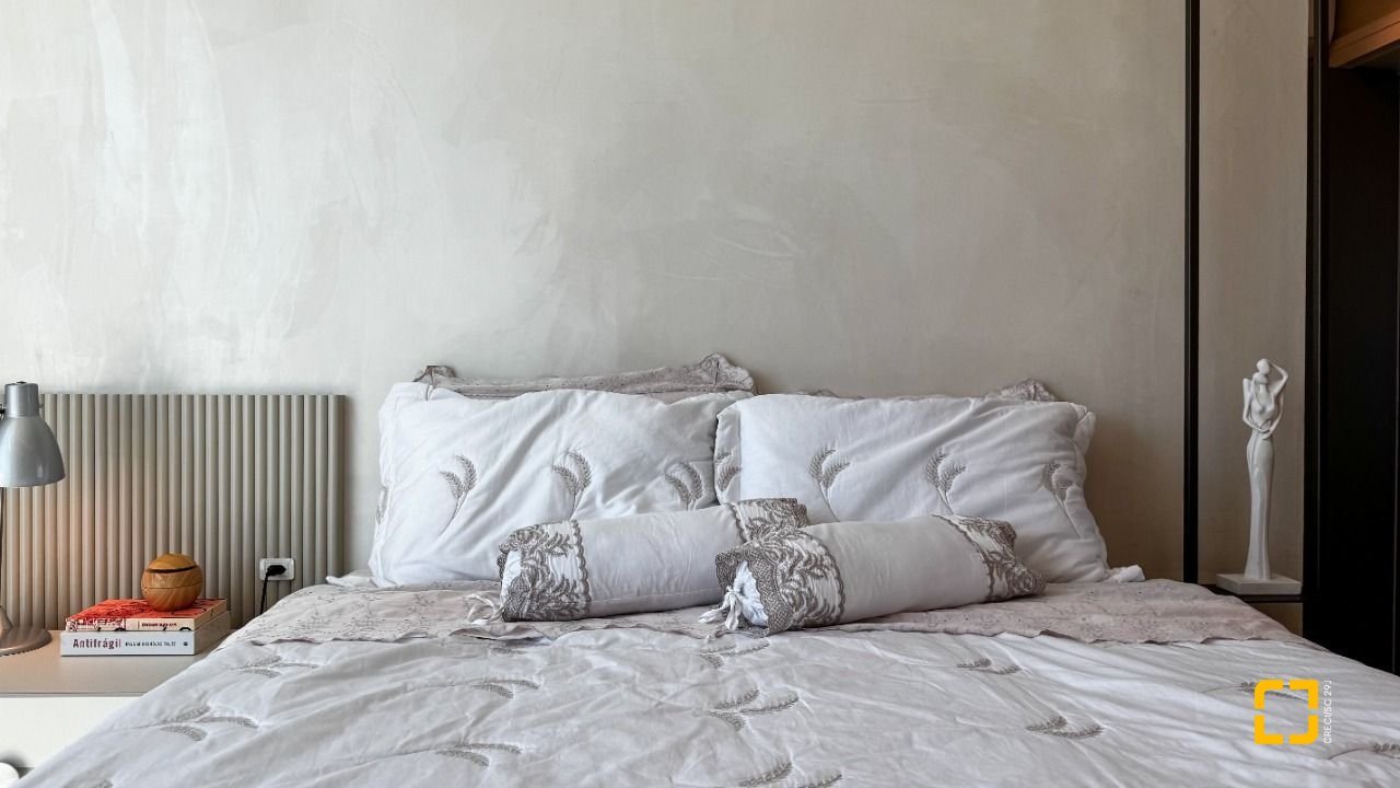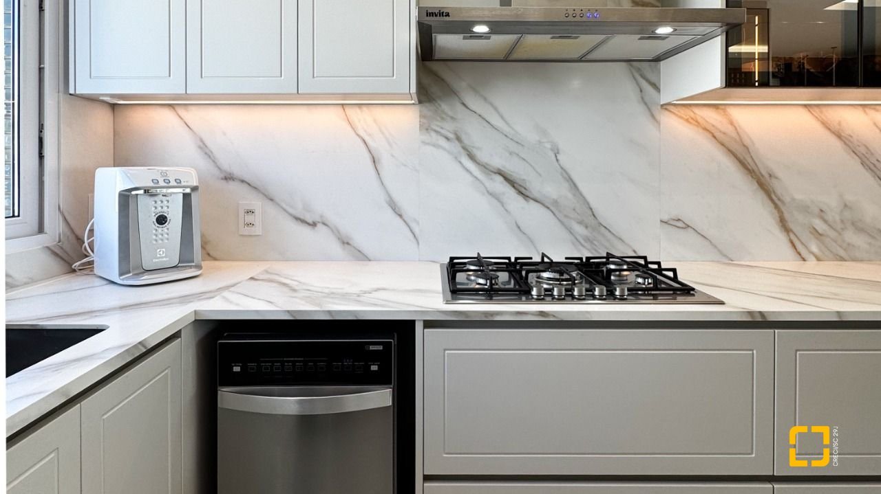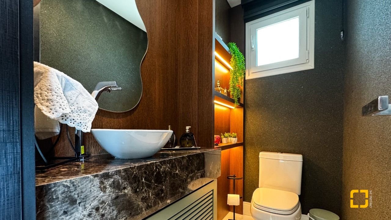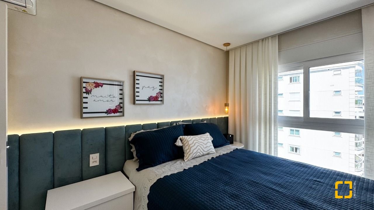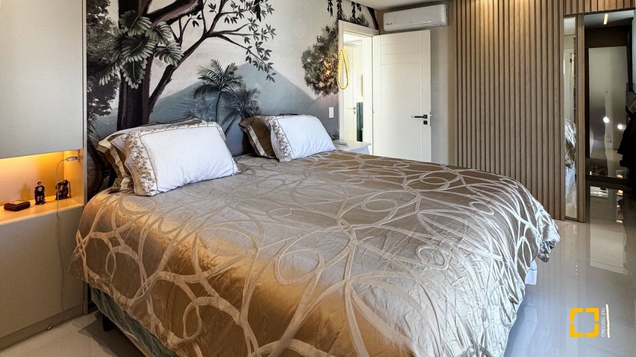 A cozinha planejada com armários, aliada à área de serviço independente e despensa, garante praticidade no dia a dia. O imóvel possui piso em porcelanato, persianas e vidros duplos nos dormitórios, além de aquecimento de água por aquecedor de passagem, preparação para automação residencial e ar-condicionado split em todos os ambientes. Permanece mobiliado com armários nas suítes, cozinha, banheiros e área de serviço.