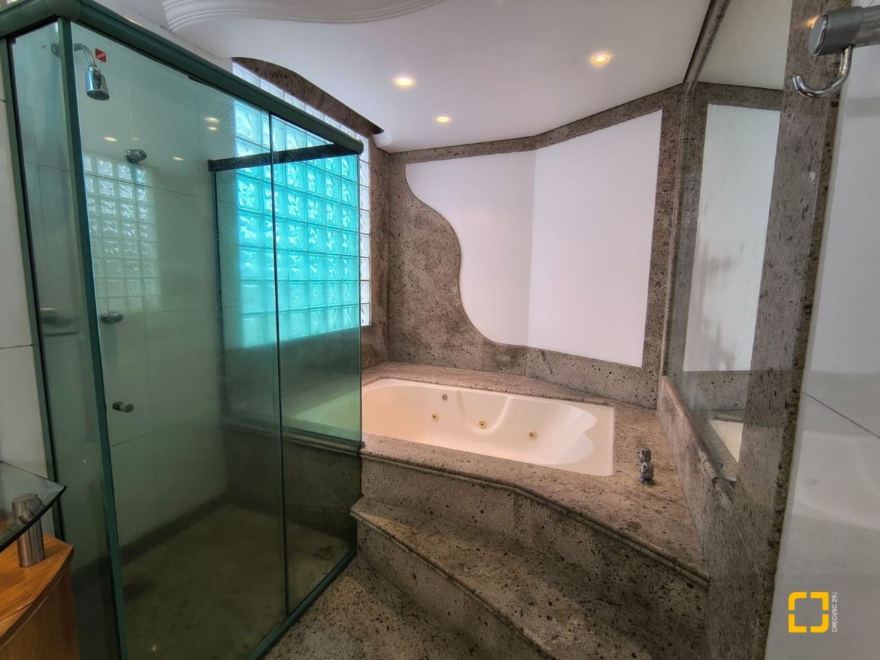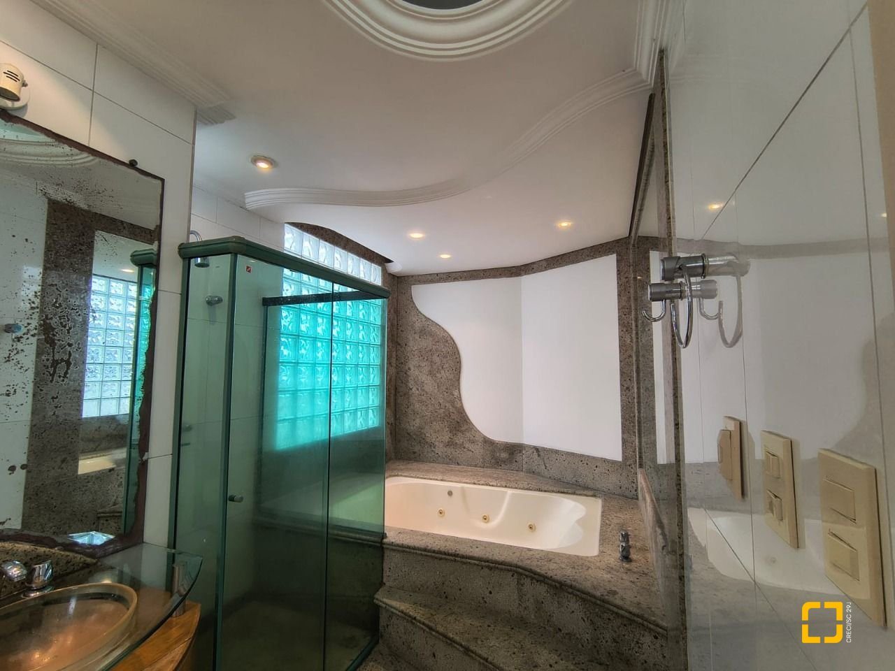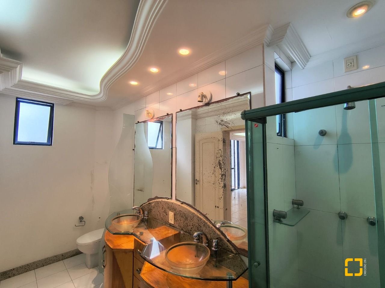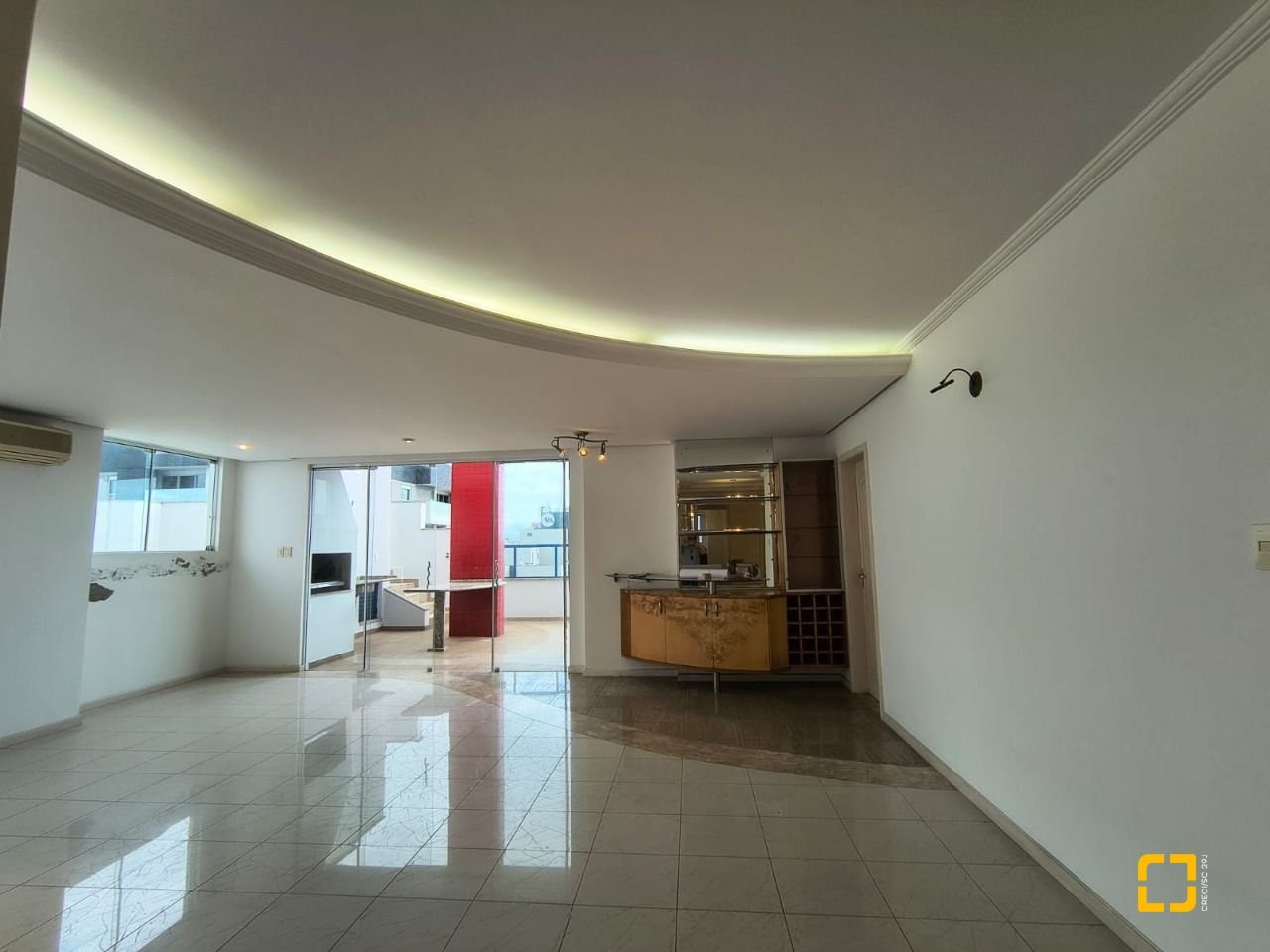 Com 459,23 m² de área privativa, a cobertura conta originalmente com 4 dormitórios, sendo 2 suítes completas, o quarto dormitório foi aberto para compor um quarto maior, mas que pode ser facilmente revertido, um banheiro social, dependência de empregada completa também com banheiro.