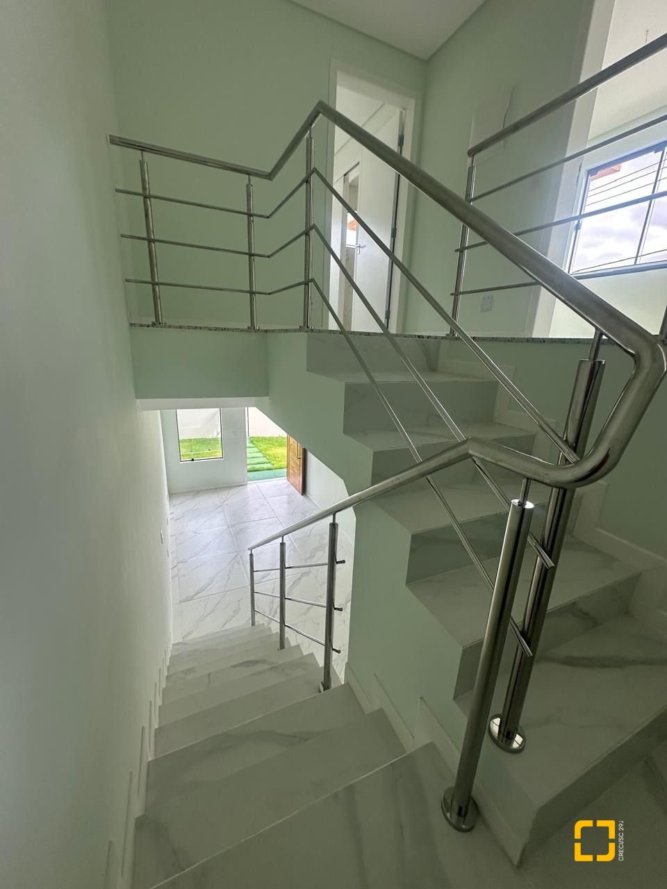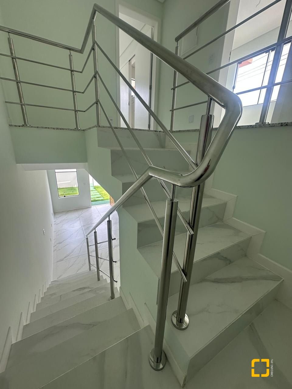 * Escada com corrimão em Aço Inox.