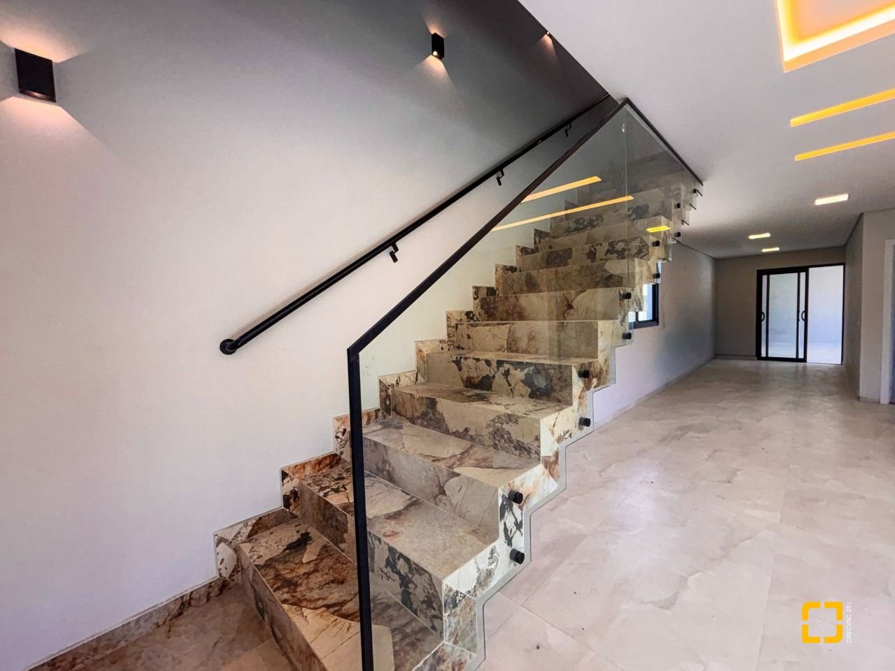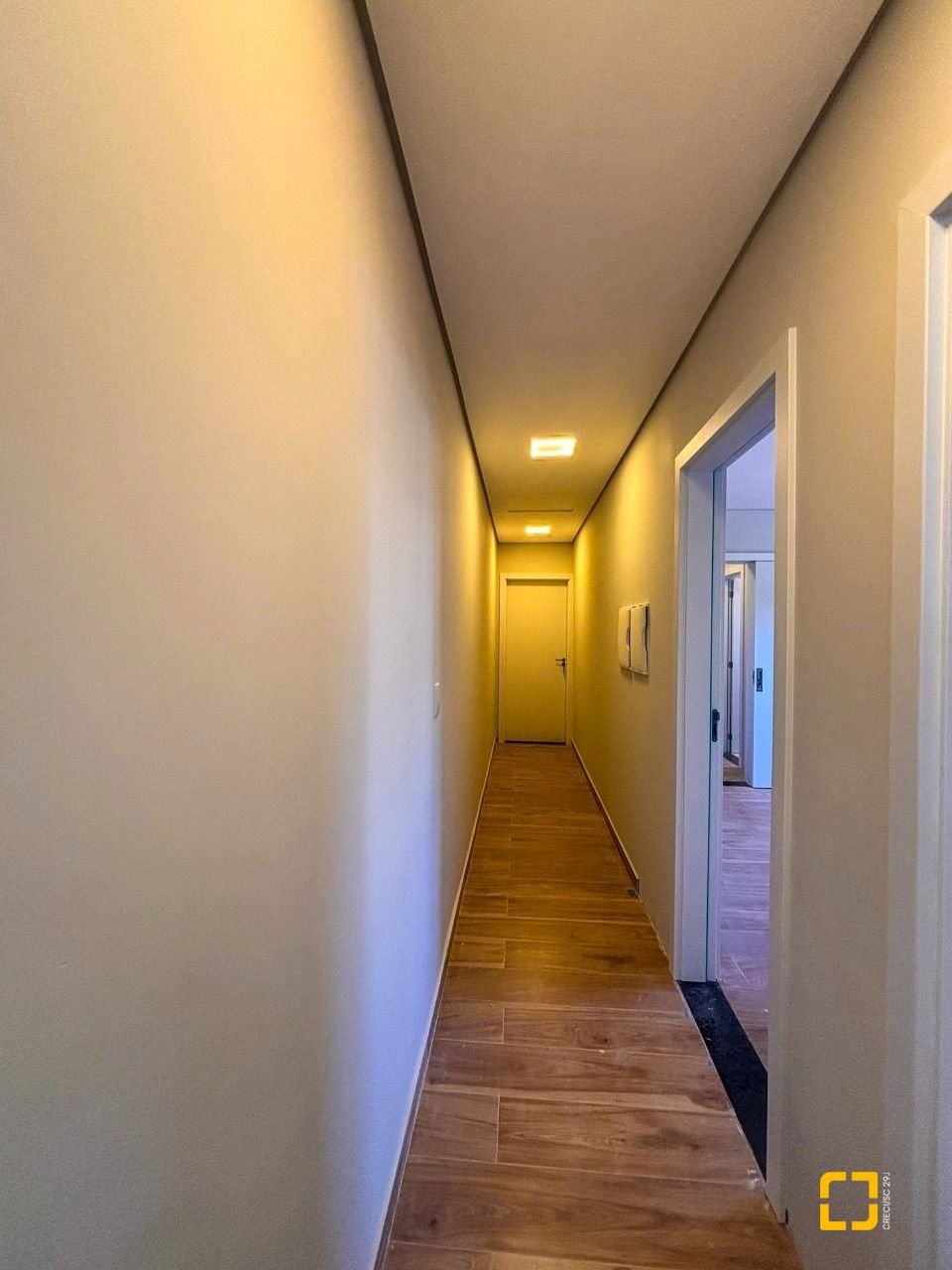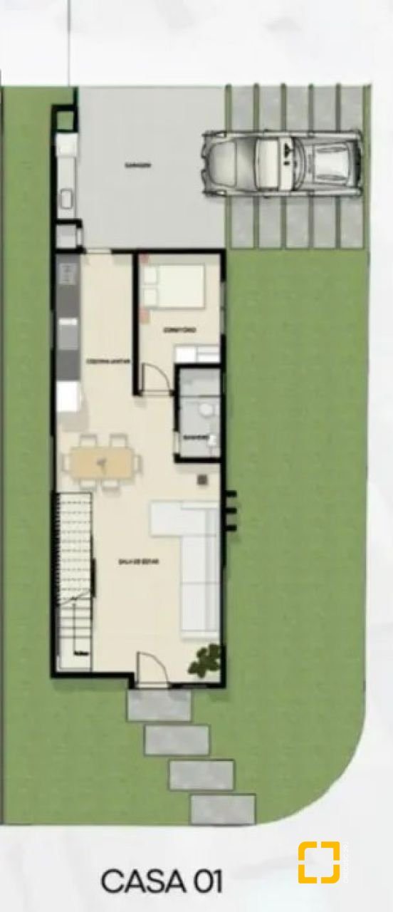 Com 177 m² de área construída, o imóvel dispõe de três dormitórios, sendo uma suíte com closet e duas demi-suítes, além de sala de estar e jantar integradas, cozinha funcional, lavabo, lavanderia e duas vagas de garagem cobertas.